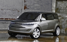 Les stylistes ont également conçu une section arrière très polyvalente avec des chaises mobiles, un siège baquet avant du côté passager qui se retourne vers l'arrière et une table amovible dont la surface est à commande par effleurement. Pour donner encore plus d'espace à l'intérieur, le tableau de bord peut être reculé ou avancé selon les besoins, une fois le véhicule immobilisé, bien sûr. On ne peut certainement pas accuser les stylistes de cette compagnie de manquer d'audace, bien au contraire. Jusqu'à présent, aucun manufacturier n'a osé commercialiser une fourgonnette avec une portière arrière s’ouvrant verticalement. Peut-être que Kia va relever le défi.