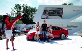 Un peu plus loin, on trouvait une aire aménagée où le public pouvait assister à des « shows de boucane » en série et à des cascades de motos spectaculaires au son de musique rock et de musique techno si chère aux Allemands… Juste à côté, le stand Seat présentait des chorégraphies de danse alors que des mannequins se contentaient de prendre la pose près des voitures chez Skoda. Au Wörtherseetour, on peut voir des voitures modifiées à l’extrême et ça ne se limite pas à de simples Golf, puisqu’il est aussi possible d’y voir des voitures aussi chères qu’une Audi S8 modifiée à l’extrême et habillée une peinture spéciale. Les vendeurs d’équipement et d’accessoires y sont également légion et pendant quatre jours, la fête se prolonge jusqu’à tard dans la nuit...