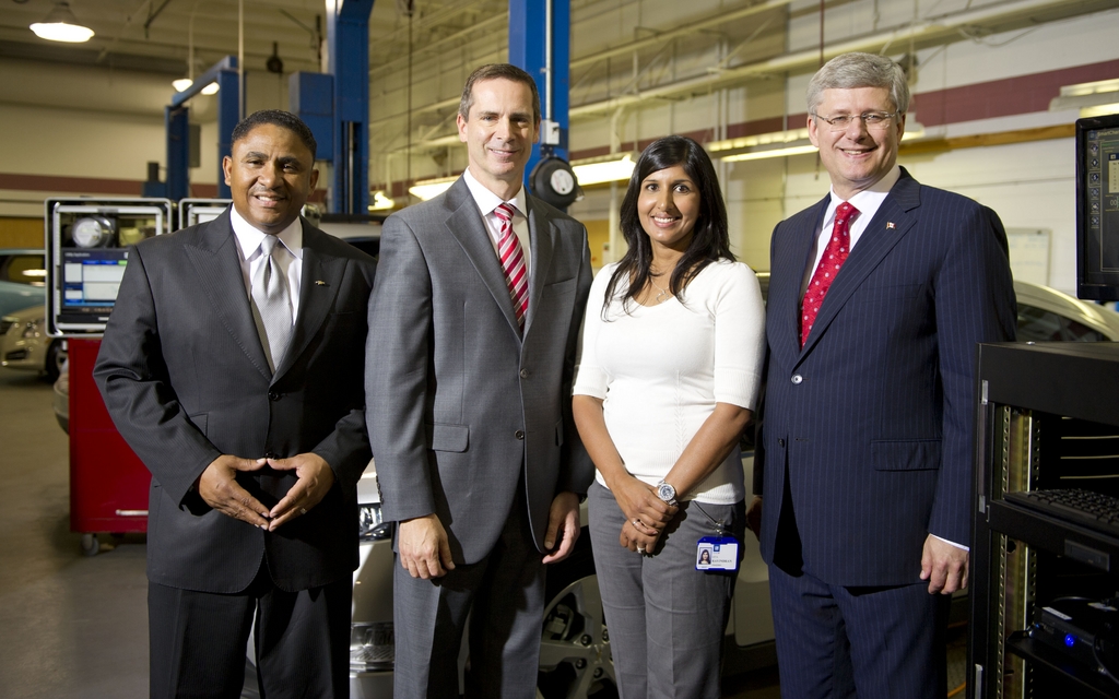 « General Motors du Canada a déployé de grands efforts depuis 2009, année au cours de laquelle notre gouvernement s'est engagé à soutenir sa restructuration. Nous sommes heureux, en partie grâce à ce soutien, de voir que GM prévoit d'importants investissements dans le secteur automobile et l'industrie manufacturière au Canada, a déclaré le premier ministre du Canada, Stephen Harper. De tels investissements dans la recherche et le développement sont un avantage important pour le Canada, favorisant les innovations canadiennes et notre capacité d'être concurrentiel dans le marché international, et créant des emplois durables et bien rémunérés. »