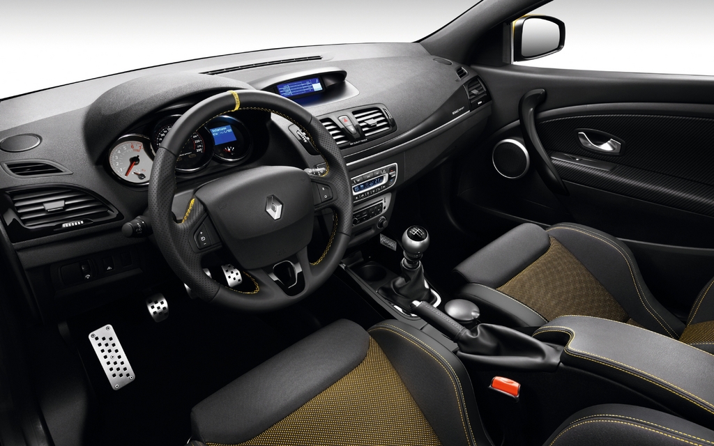 Côté look, la teinte « Noir Etoilé » est rehaussée de quelques touches de Jaune Sirius sur la lame F1, les rétroviseurs et le diffuseur arrière. Un stripping à damier noir sur le toit, et sur le côté, le logo officiel de l’écurie « Red Bull Racing formula one official team » ancrent définitivement Mégane R.S dans le monde du sport automobile et de la Formule 1.