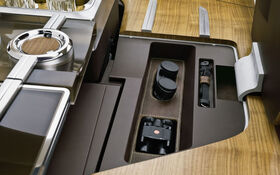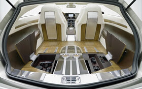 A l’intérieur, luxe, calme et volupté font corps avec cet habitacle ultra cossu utilisant des matériaux très riches, tels cuir et nubuck au niveau des sièges et de la planche de bord, sans oublier la présence du bois, de verre fumée et d’aluminium dans la section dévolue au chargement. La valise regroupe également un compartiment réfrigéré et un humidificateur. Un vaste toit panoramique permet aux passagers de profiter d’un intérieur fortement éclairé.