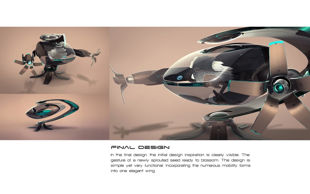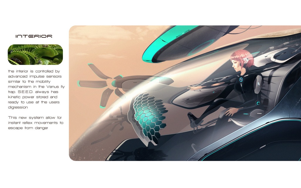 De son côté, le Sustainable Efficient Exploratory Device (S.E.E.D.) se meut par une pale rotative multifonctionnelle alliée aux énergies solaires et éoliennes. Il explore les environnements les plus hostiles de la planète.