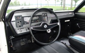 Le Rebel The Machine, ce n’est pas seulement un gros moteur et une carrosserie flamboyante. Pour s’assurer d’être pris au sérieux, AMC s’associe avec la réputée Hurst Performance, comme il l’avait fait pour son SC/Rambler. Le V8 de 390 pouces cubes développe 340 chevaux et un respectable 430 livres-pied de couple à 3 600 tr/min. La transmission, une Borg-Warner T-10, est une manuelle à quatre rapports et le levier de vitesses est, vous l’aurez deviné, un Hurst. Le différentiel (3.54 :1 ou 3.91 :1 – celui de notre voiture vedette est un 3.54) est à glissement limité Twin Grip. La suspension avant est plus ferme (lire Heavy Duty) que celle du Rebel ordinaire tandis qu’à l’arrière, les ingénieurs ont installé les ressorts plus solides de la familiale, ce qui rend la voiture haute sur pattes si l'on peut dire. Les freins avant sont à disque mais les pneus, des E60x15, sont toujours à plis.