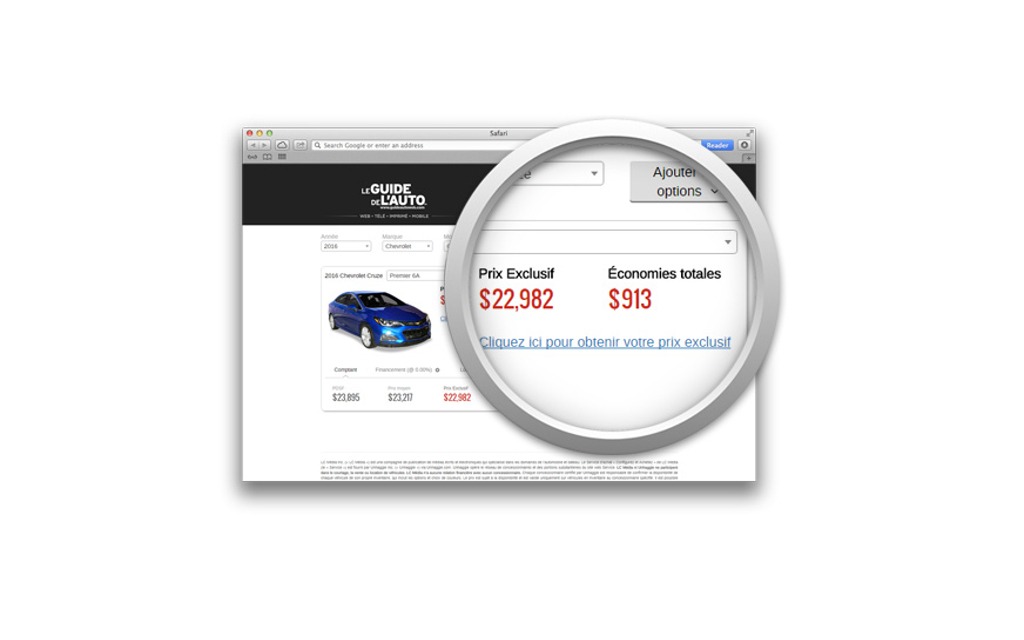 Disons, par exemple, que vous cherchez un Chevrolet Cruze, mais vous voulez payer moins que le prix de détail suggéré du fabricant (PDSF) ou gaspiller de temps en visitant plusieurs concessionnaires :