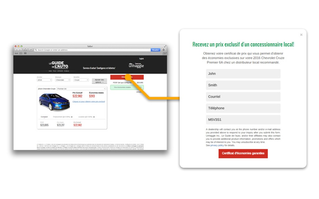 Étape 3 : Si vous êtes satisfait des économies proposées et désirez procéder avec ce prix, cliquez sur « Obtenez ce prix » et entrez votre information de contact.