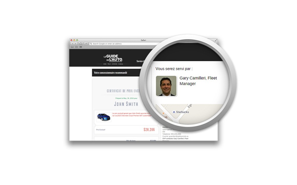 Après avoir confirmé votre information, vous serez présenté au concessionnaire qui vous a proposé ces économies. Il vous contactera directement pour voir si vous avez des questions, désirez un rendez-vous ou souhaitez vérifier les niveaux d’inventaire.