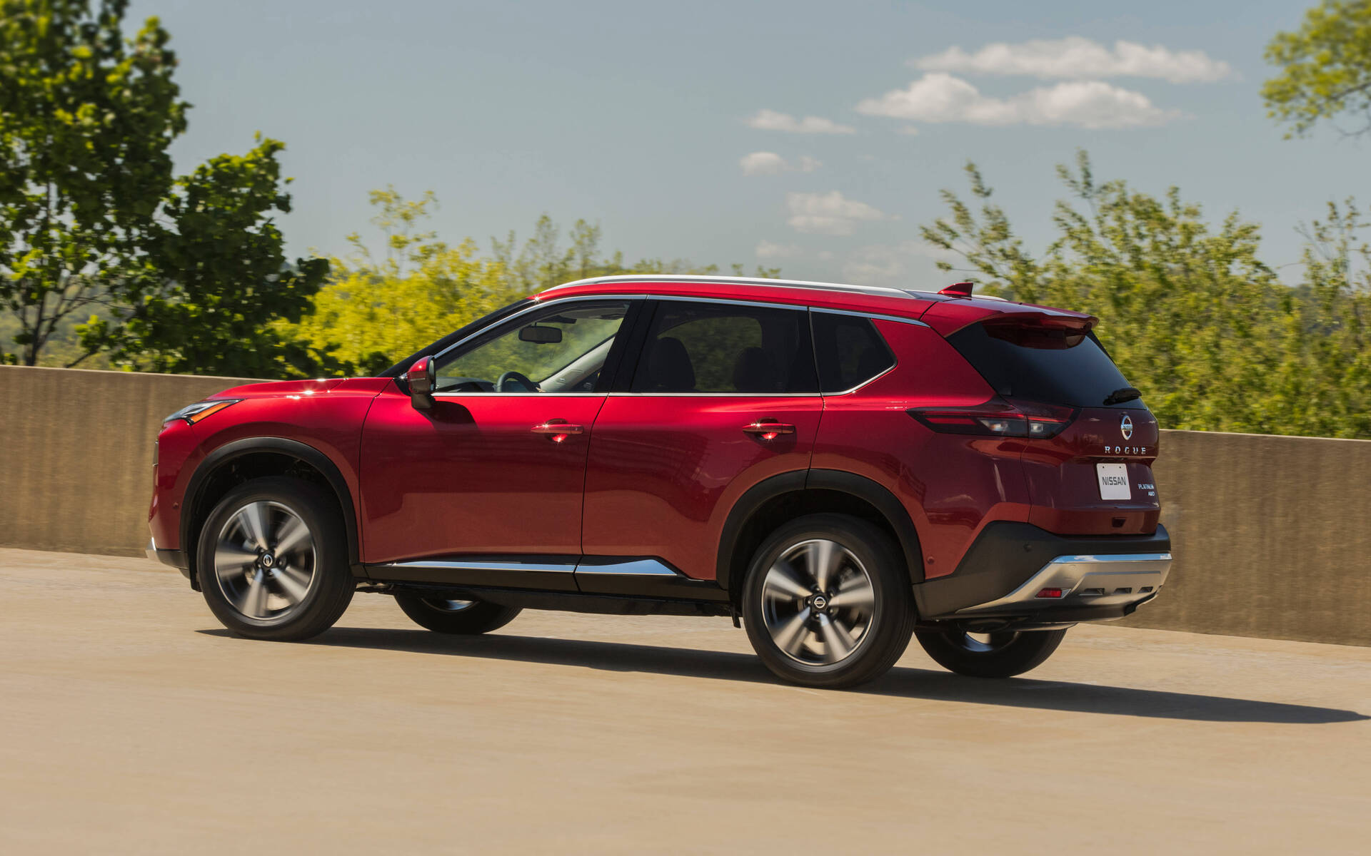 Reposant sur une toute nouvelle plateforme qui a gagné en rigidité, le Rogue de troisième génération fait aussi appel à une nouvelle suspension, visant à améliorer confort et stabilité sur la route. Nissan a également réussi à abaisser le poids d’environ 40 kg par rapport à son devancier, notamment grâce à l’adoption de portières, d’ailes avant et d’un capot en aluminium. Puis, bien que le véhicule paraisse plus massif que jamais, il se veut plus court que les deux générations qui l’ont précédé.