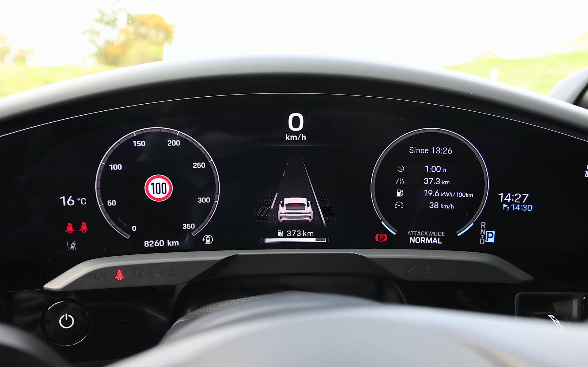 La circulation n’étant pas encore trop dense en ce début d’après-midi, nous avons pu pousser la voiture à son maximum. Et nous n’avons pas souvenir d’avoir atteint de telles vitesses aussi rapidement au volant d’une voiture, qu’elle soit électrique ou à essence. À environ 100 km/h, enclencher le mode Attaque et accélérer à fond reviendrait presque à déformer l’espace-temps!