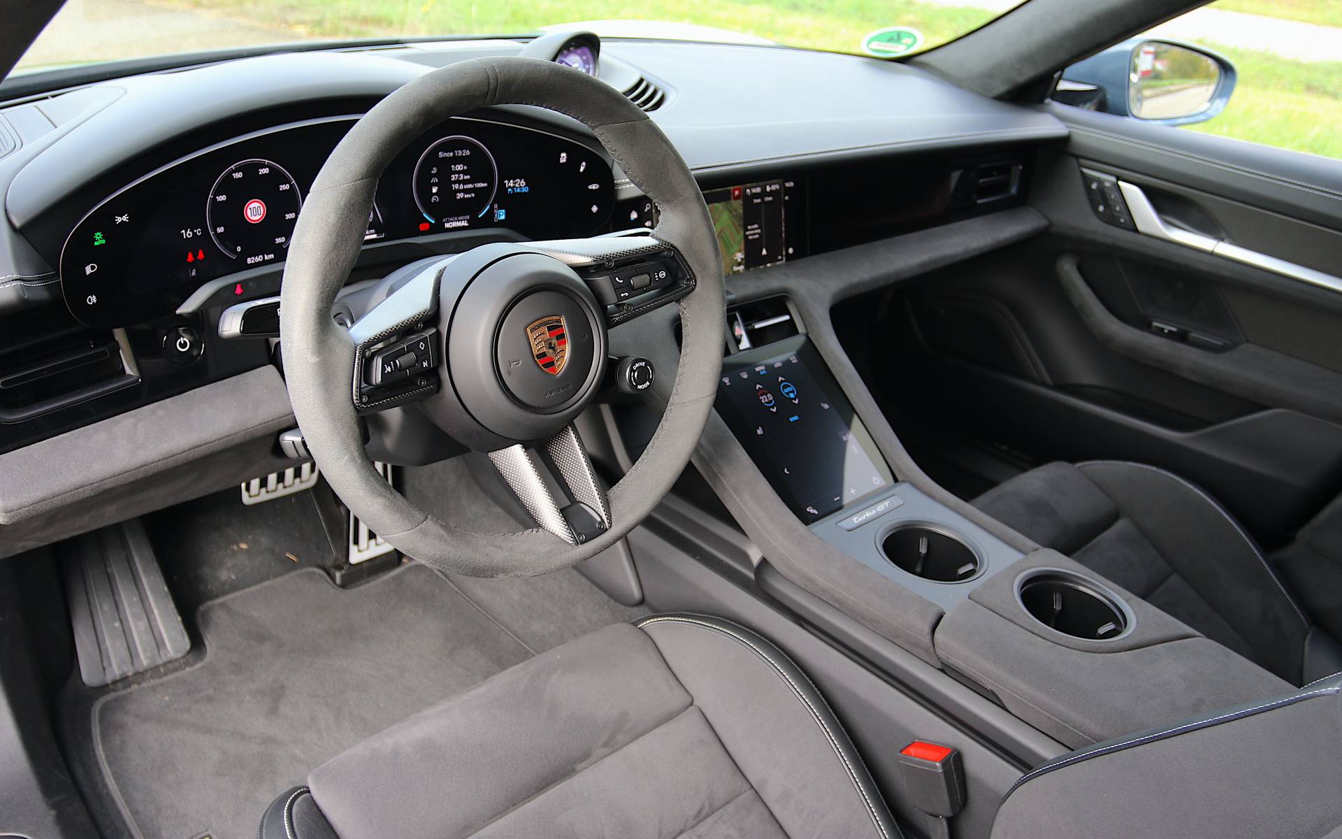 La vitesse et les courbes les plus vicieuses ne semblent pas avoir de prise sur elle, ses capacités dynamiques n’étant jamais prises en défaut. Il en ressort une impression de plénitude, de maîtrise absolue, alors que la vitesse inscrite au tableau de bord laisse penser le contraire. En fait, la Taycan Turbo GT est tout simplement trop bonne pour le monde qui l’entoure. Elle surclasse à peu près tout ce qui roule, sans jamais donner l’impression de forcer.