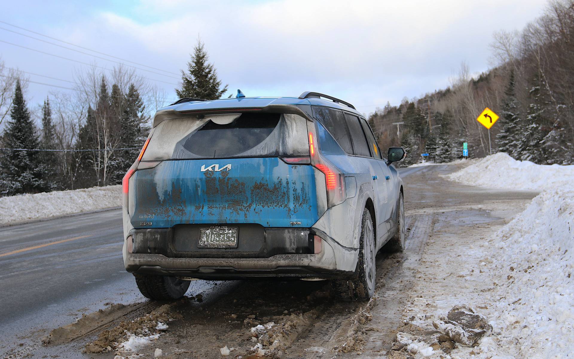 Bien que cette situation soit finalement très rare parmi les utilisateurs de véhicules électriques, CAA Québec nous a conviés à une expérience avec plusieurs modèles à batterie, en les conduisant tous jusqu’à la panne. L’objectif? Savoir quelle distance ils peuvent réellement parcourir et comment ces derniers se comportent jusqu'à leur arrêt complet. Pour notre part, nous avons conduit un Kia EV9 GT-Line à rouage intégral doté de la plus grosse batterie (99,8 kWh), disposant d’une autonomie théorique de 435 km en été.