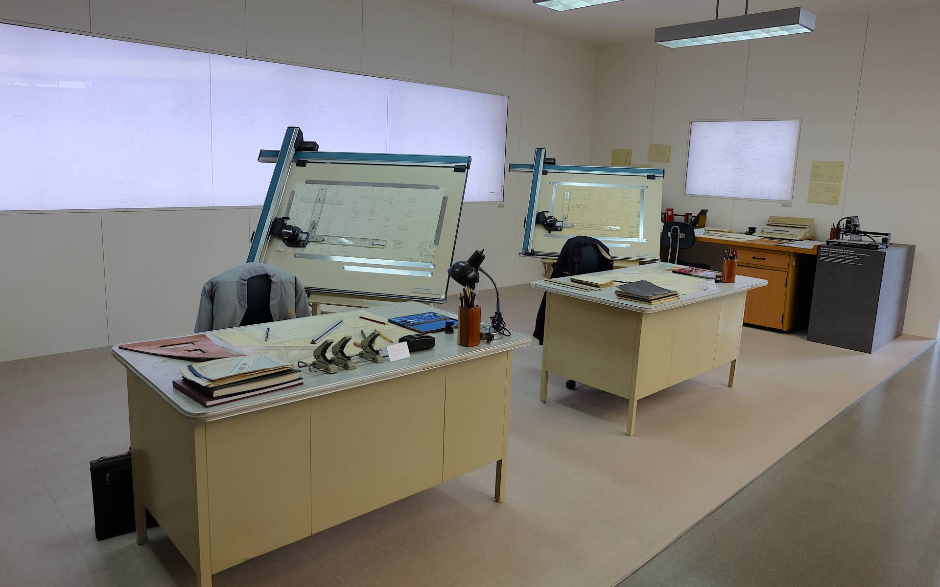 Pour rappeler l’ambiance des bureaux d’études de cette époque, le constructeur a même rapporté des meubles, du matériel de bureau ainsi que des tables à dessin pour plonger les visiteurs dans le quotidien des ingénieurs des années 70. Les employés présents sur place offraient même aux visiteurs une reproduction sur papier des plans des Pony, Elantra et IONIQ 5 au choix. Nous en avons rapporté un en souvenir…