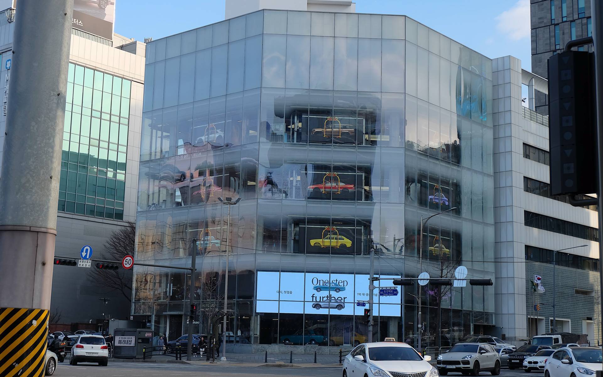 L’après-midi, nous avons mis le cap sur le Motorstudio du quartier huppé de Gangnam (celui dont parle la célèbre chanson Gangnam Style de Psy). Au moment de notre visite, l’exposition temporaire du constructeur faisait référence au 100 millionième véhicule produit par Hyundai.
