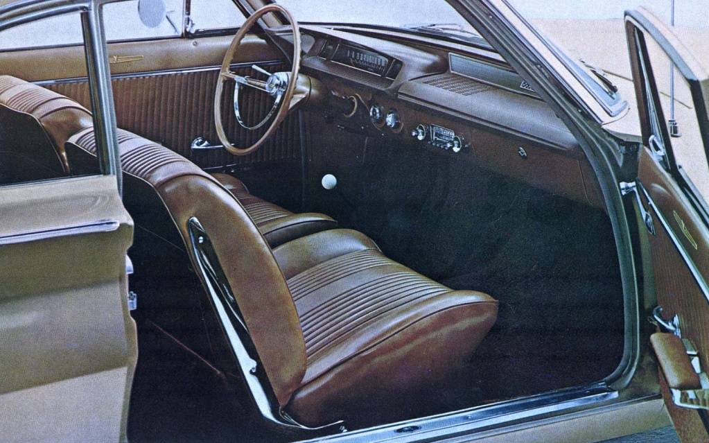 L’équipement de base, comme c’est la norme à l’époque, est très limité. Heureusement, que ce soit à travers des groupes ou en individuel, les options ne manquent pas : direction assistée, climatisation, chauffage, radios, ensembles décoration, rétroviseur conducteur réglable de l’intérieur, lave-glace, allume-cigare, feux de recul, enjoliveurs de roues, klaxon deux tons et… ceintures de sécurité. Les freins assistés ne sont pas disponibles, pas même contre supplément. Le prix de base est de 2 702 USD/2 858 CAD pour une berline et 2 980 USD/3 216 CAD pour une familiale Safari.