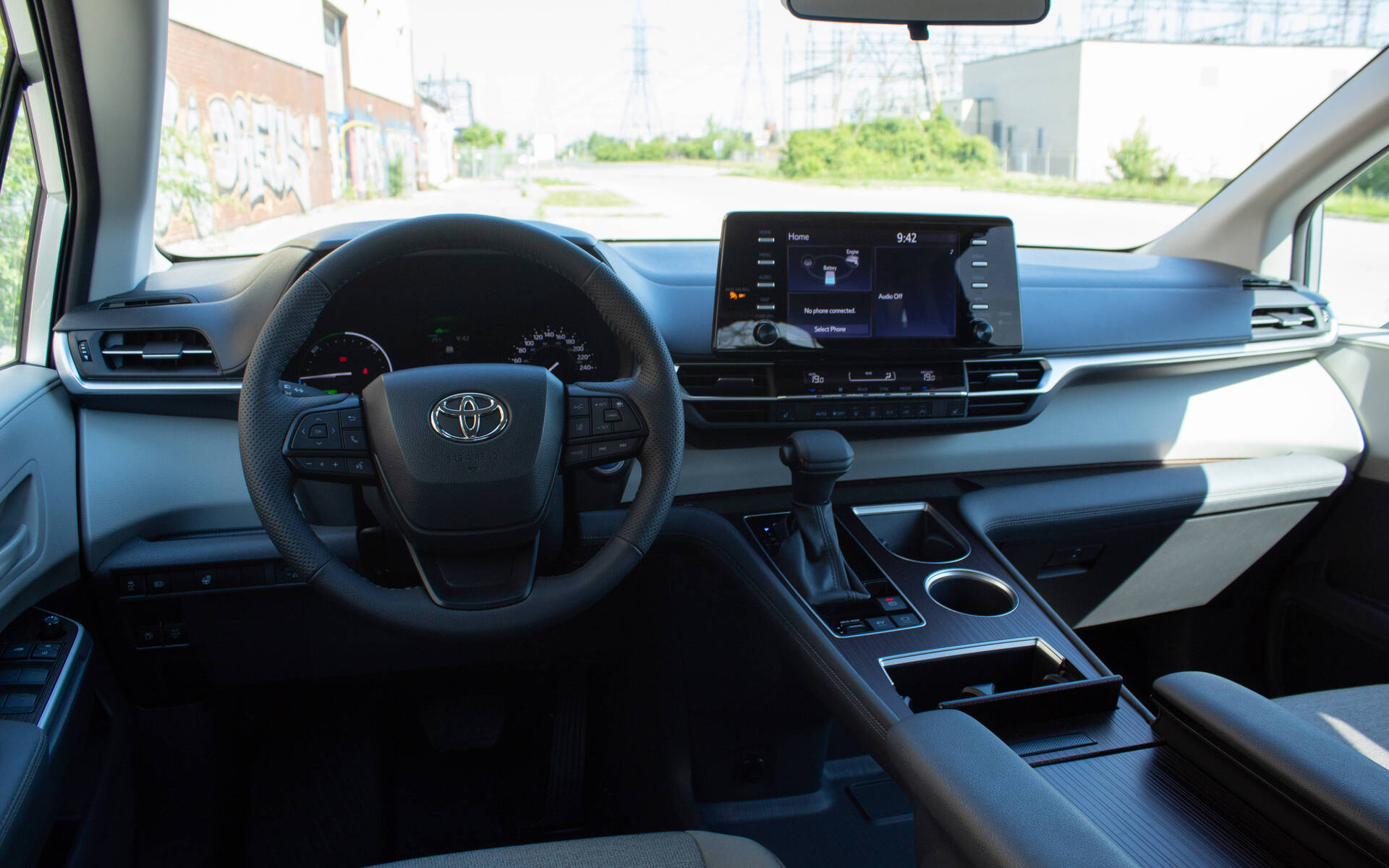 La finition dans l’habitacle n’est peut-être pas la plus riche et moderne du segment, mais on apprécie l’ergonomie du poste de conduite, lequel bénéficie d’une quantité étonnante de rangements sous la console centrale. Toutes les Sienna sont équipées d’un écran central de 9 pouces comprenant Apple CarPlay et Android Auto. L’interface du système d’infodivertissement est simple sur le plan graphique, fonctionnelle dans son utilisation et s’avère assez rapide.