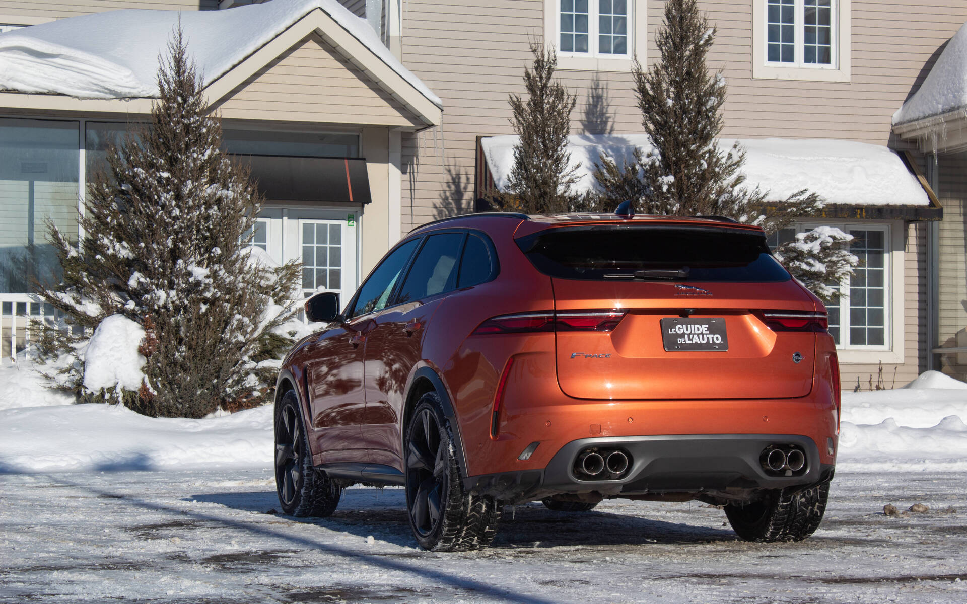 En attendant tous ces changements, le F-Pace poursuit sa carrière en célébrant les 90 ans du nom Jaguar, apparu en 1935 (la compagnie s’appelait à l’époque SS Cars). Pour souligner l’événement (et, par le fait même, la fin des V8 chez Jaguar), une version commémorative basée sur le SVR Édition 575 est animée par un V8 suralimenté de 5 litres développant 567 chevaux et qui fait entendre bruyamment sa présence grâce à un système d’échappement actif. Sur la route, cette version à tirage limité se reconnaît à son ensemble extérieur noir, ses prises d’air plus grandes et son pare-chocs avant optimisé, ses bouches d’aération sur le capot, ses ouïes latérales, son aileron arrière et ses jantes de 22 pouces. À l’intérieur, on retrouve un nouveau volant et des sièges enveloppants en suédine ébène et cuir Windsor ou en cuir semi-aniline en option. Ce F-Pace est le plus rapide jamais conçu avec un temps de 4,6 secondes pour accélérer de 0 à 100 km/h et une vitesse de pointe de 286 km/h.