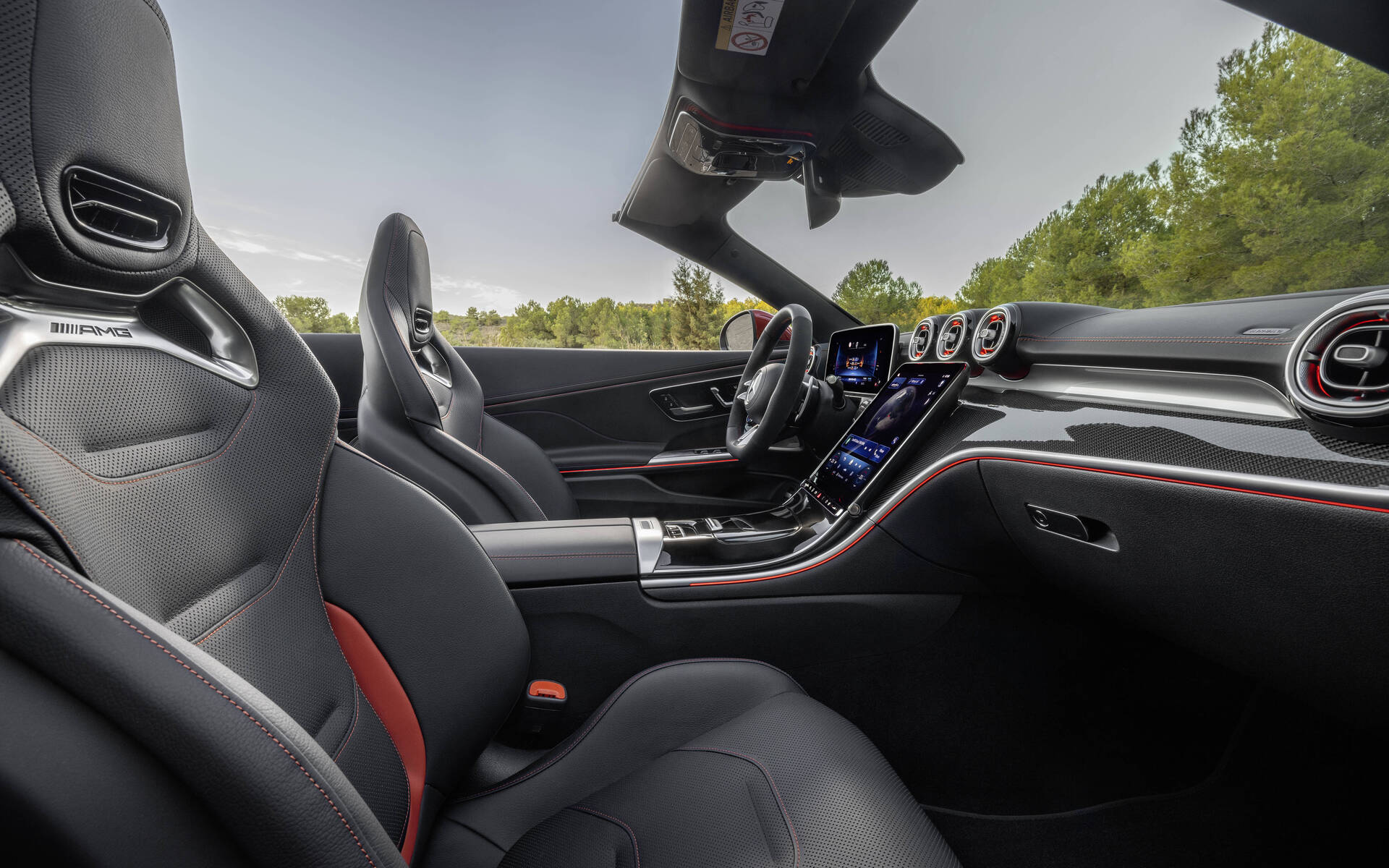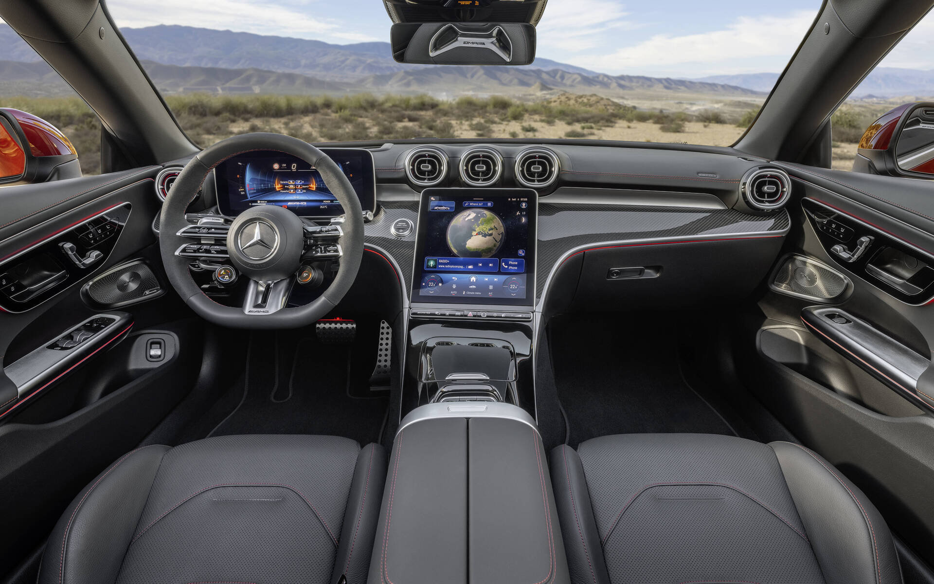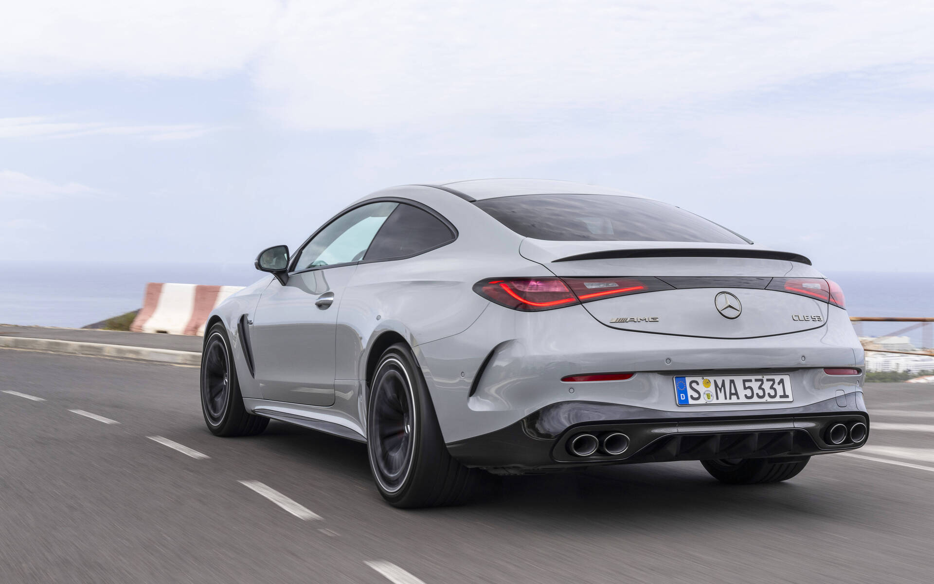 Si la variante CLE 450 animée par une motorisation 6 cylindres plus puissante n’est pas offerte de notre côté de la frontière, les acheteurs canadiens peuvent en revanche goûter à la haute sportivité avec la Mercedes-AMG CLE 53. Contrairement à certaines variantes axées sur la performance dans le monde automobile, dont les améliorations concernent les composants mécaniques et seulement quelques retouches esthétiques, la CLE 53 de démarque au premier regard avec une carrosserie plus agressive et ses voies élargies par rapport à la CLE 300 (56 mm à l’avant et 29 mm à l’arrière). À l’avant, la calandre signée AMG est aussi accompagnée de prises d’air élargies.