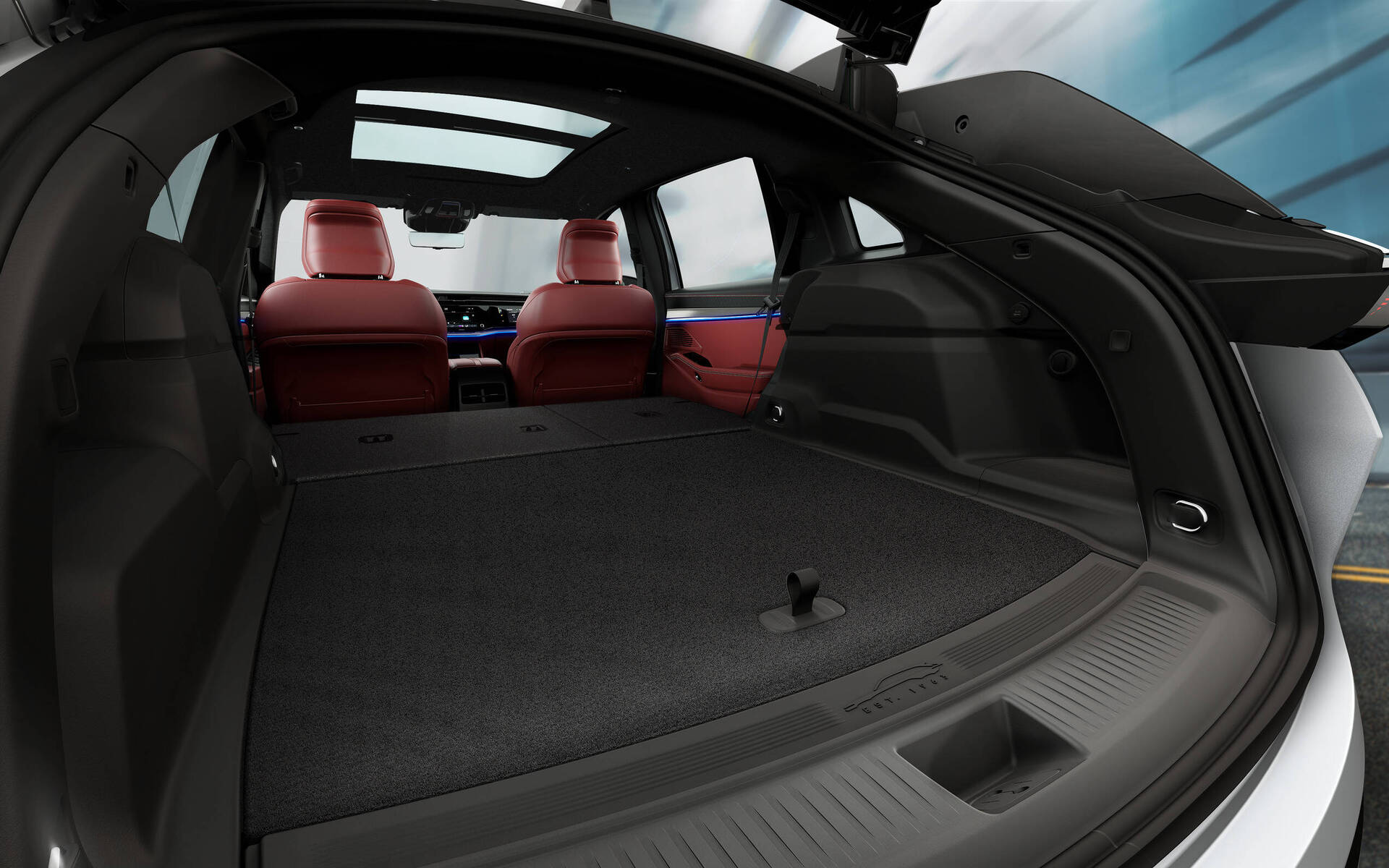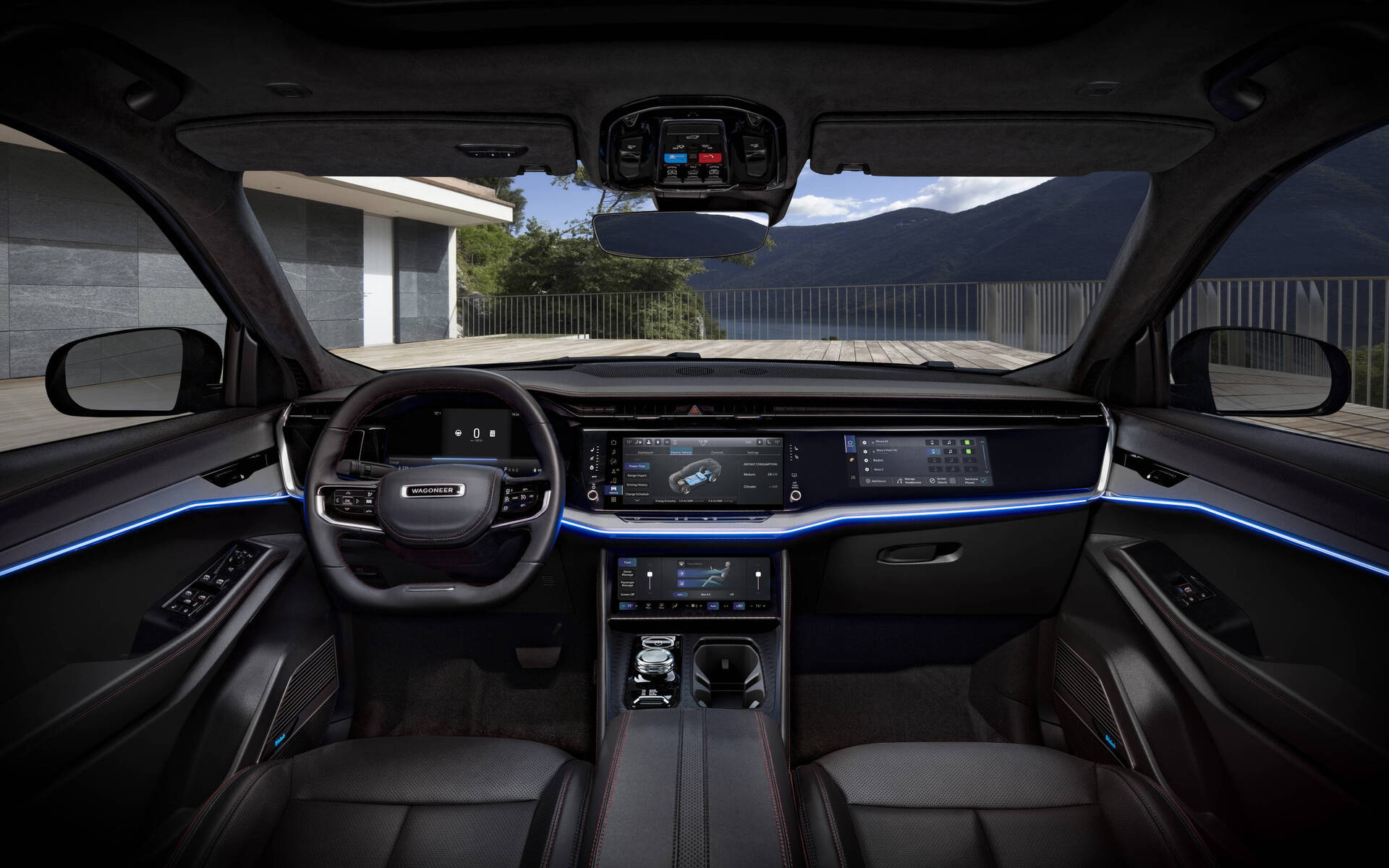 À commencer par l’esthétique. Elle reste dans les bornes classiques de la marque, certes, mais elle est très élégante et beaucoup plus dans le langage des VUS que le bulbeux Model Y. Même s’il n’y a plus besoin de radiateur, la traditionnelle calandre Jeep à 7 barres est encore présente, cette fois illuminée. Les designers ont travaillé de concert avec les aérodynamiciens pour atteindre un Cx de 0,29. D’ailleurs, Stellantis semble avoir développé une jolie expertise pour dissimuler des éléments aérodynamiques comme l’aileron R à l’avant de la Dodge Charger ou bien, comme ici, les vitres arrière en trompe-l’œil qui cachent un toit fortement incliné sous l’aileron.