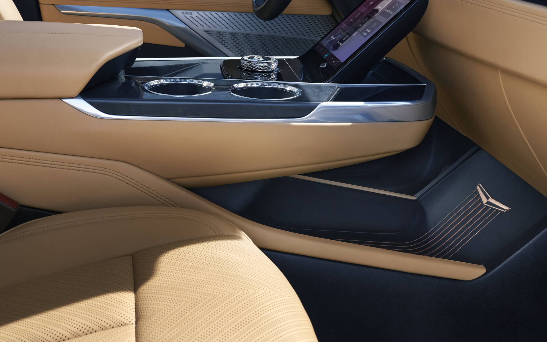 Pourtant, Cadillac a tout donné pour tenter de défier les lois de la physique en termes de comportement routier : amortisseurs à contrôle magnétorhéologique MagneRide 4.0, suspension pneumatique (ajustement de la hauteur de -2 à +1 pouces) et les 4 roues directrices (diamètre de braquage de seulement 12 mètres). La fonction pour se déplacer en diagonale (la fameuse marche en crabe) sera offerte contre un supplément, ce qui est mesquin puisqu’il s’agit d’une simple mise à jour logicielle.