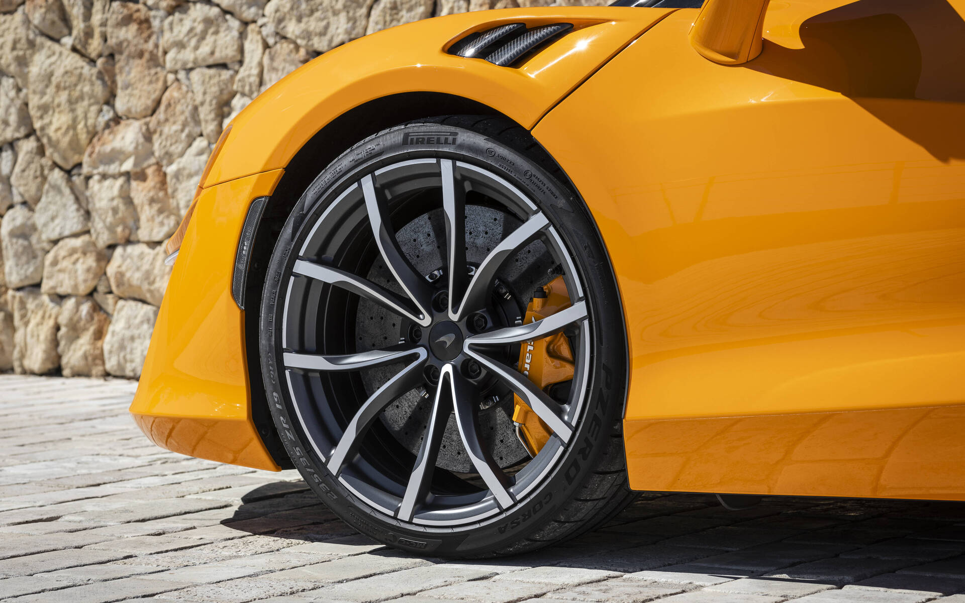 La V6 turbo de 3 litres revendique 690 chevaux (soit 19 de plus qu’auparavant) et une livrée plus linéaire du couple entre 4 000 et 8 500 tr/min. Le moteur électrique sert à améliorer les performances et à rouler sans émissions sur près d’une vingtaine de kilomètres lorsque la batterie d’une capacité de 7,4 kWh est pleinement chargée. Il sert aussi également manœuvres de recul, sa rotation étant simplement inversée. Cette année, les ingénieurs ont aussi revu la cartographie de la boîte de vitesses afin que les passages de rapports soient plus rapides de 25%. Enfin, McLaren a retravaillé les liaisons au sol en équipant les amortisseurs de nouvelles soupapes afin que ceux-ci réagissent 90% plus rapidement.