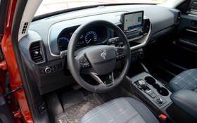 Ford entend que tous ses modèles proposent au moins une option hybride d’ici 2030. On l'attend toujours pour le Bronco Sport, même si son cousin l'Escape en compte deux. Le 3 cylindres de 1,5 litre convient à une majorité d’acheteurs en termes de puissance, quoique le temps de réponse du turbo agace, que le moteur gronde excessivement et qu’il consomme autant qu’un 4 cylindres. Et c’est sans parler de la boîte à 8 rapports mal adaptée. Le 4 cylindres de 2 litres, certes plus assoiffé, offre des performances beaucoup plus convaincantes. Alterner entre les 5 ou 7 modes de conduite (selon la version) via la petite molette sur la console n’oblige pas à détourner notre attention de la route, ce qui est bien. Le roulement est stable et sans trop de roulis en général, mais dur sur les chaussées endommagées. Le freinage, lui, ne suscite aucun reproche.