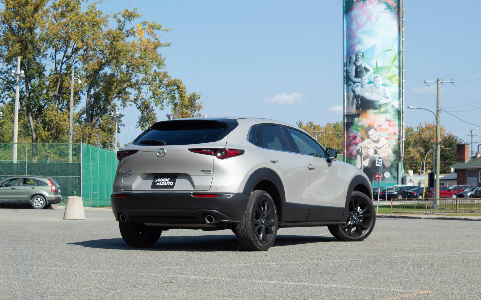 Même son de cloche au sujet du comportement routier. Le CX-30 reprend les fondations solides de la Mazda3 Sport qui lui confèrent un toucher de route impeccable, assisté par un rouage intégral efficace. Livré de série depuis 2024, le moteur de 2,5 litres a profité en même temps de révisions qui ont augmenté sa puissance (191 chevaux) et réduit sa consommation de carburant moyenne (8,2 L/100 km). Cependant, le souffle et la souplesse remarquables du bloc turbocompressé (optionnel) rehaussent l’expérience, au prix de ravitaillements plus fréquents à la pompe. Qu’importe votre choix, ces motorisations ont fait leurs preuves et les coûts d’entretien demeurent raisonnables.