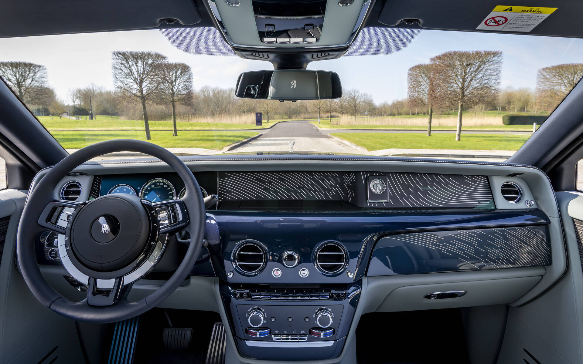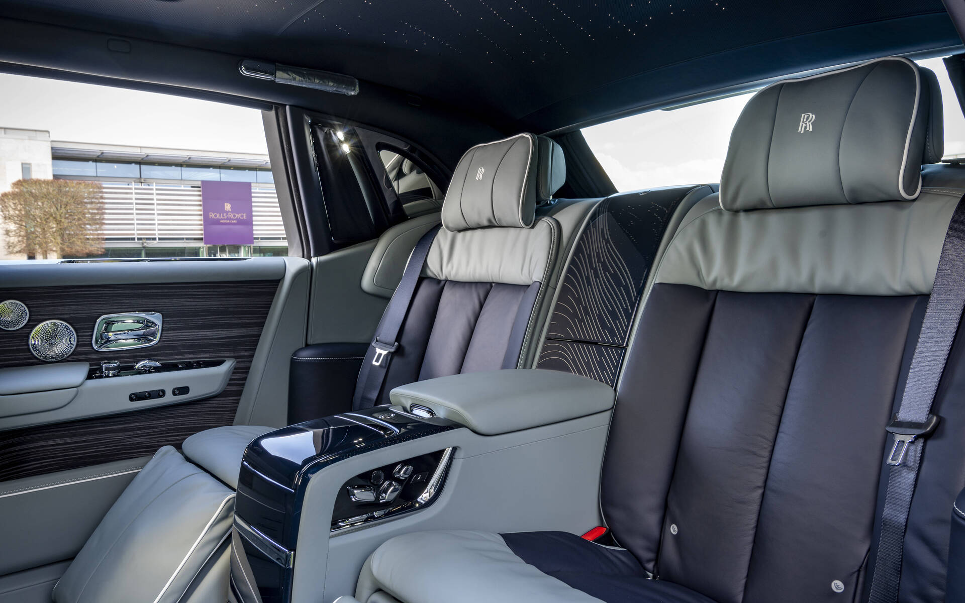 Que penser d’une voiture dont la planche de bord se transforme en galerie d’art? C’est ce que propose la Phantom avec son espace appelé The Gallery, lequel permet à l’acheteur d’exposer sous verre une véritable œuvre d’art. Au cours des récentes années, des acheteurs ont même commandé des œuvres créées spécialement par des artistes pour les exposer sur la planche de bord de leur véhicule. L’habitacle de la Phantom séduit par l’élégance de ses insertions, la richesse de ses cuirs et la finesse des surpiqûres. Il est aussi possible de commander un compartiment réfrigéré intégré entre les deux places arrière. Ce dernier permet de transporter deux flûtes en cristal Lalique et une bouteille de champagne.