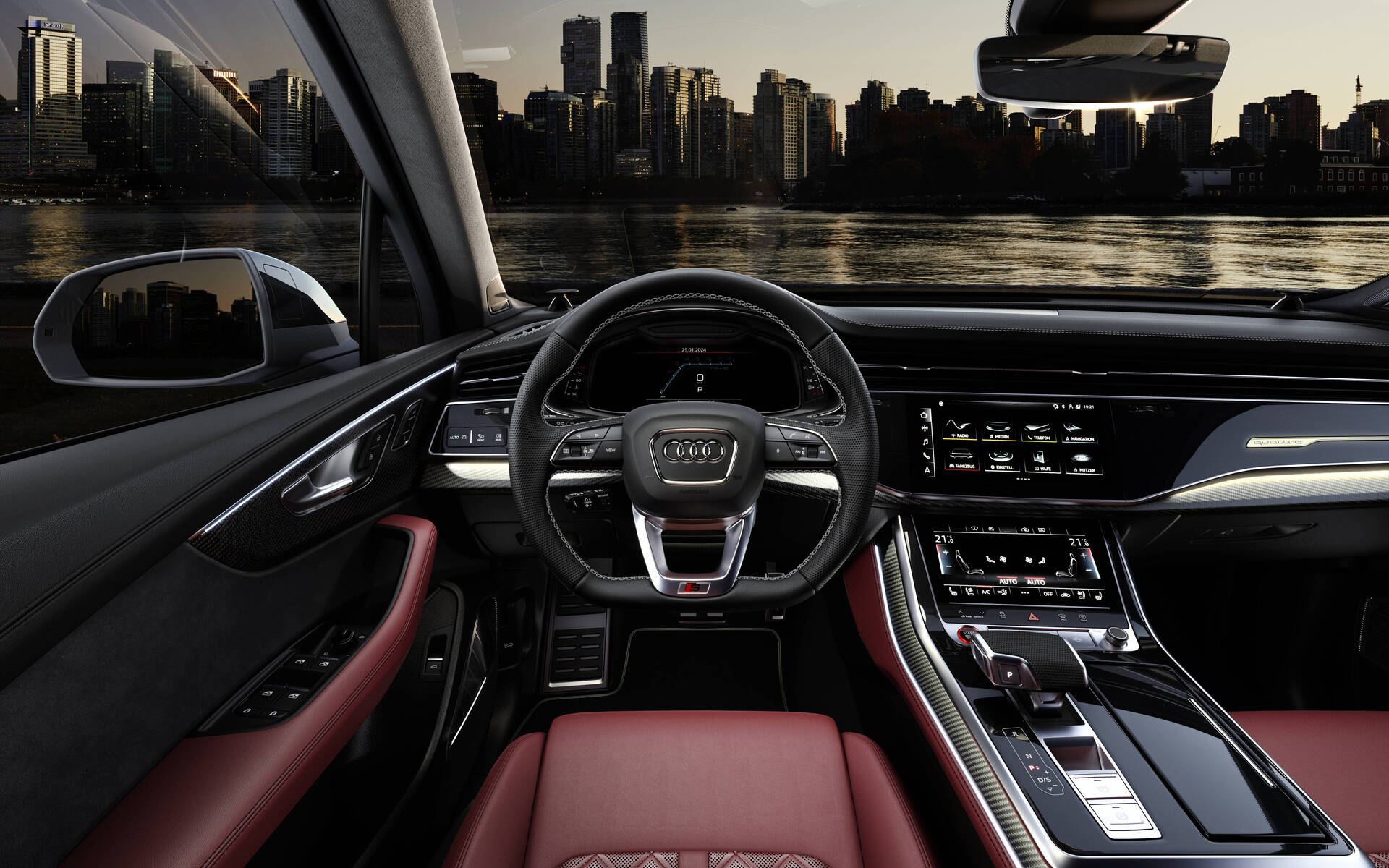 La calandre comporte maintenant des barrettes disposées à la verticale, en forme de gouttes d’eau sur le Q7 et en forme de L sur le SQ7, afin de souligner sa hauteur. Les blocs optiques ont été redessinés, de même que les feux arrière avec technologie OLED. Afin d’actualiser le style, les éléments décoratifs de la carrosserie sont maintenant d’apparence plus sobre et les pare-chocs ont été légèrement retravaillés. De nouvelles couleurs au fini métallique, nommées Sakhir Gold, Ascari Blue et Chili Red, sont au programme et de nouveaux designs ont été adoptés pour les jantes en alliage de 20, 21 et 22 pouces. Comme c’est le cas pour les plus récents véhicules de la marque, on retrouve une gravure au laser sur les piliers B de la carrosserie, laquelle indique la désignation technique du modèle. Le SQ7 se démarque par ses prises d’air surdimensionnées, son nouveau déflecteur avant et son diffuseur aux lignes plus affirmées.
