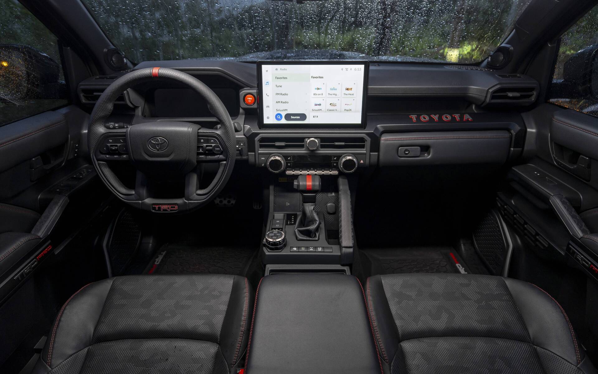 Enfin, la planche de bord est également partagée avec le Tacoma. Plus moderne, elle intègre les derniers systèmes d’assistance à la conduite (Toyota Safety Sense 3.0 de série). Côté écrans, le conducteur bénéficie d’instruments numériques de 7 pouces en entrée de gamme et de 12,3 pouces pour les modèles mieux équipés, alors que la console centrale est occupée par un écran tactile de 8 ou 14 pouces. Cependant, Toyota a eu la bonne idée de conserver de nombreux boutons.