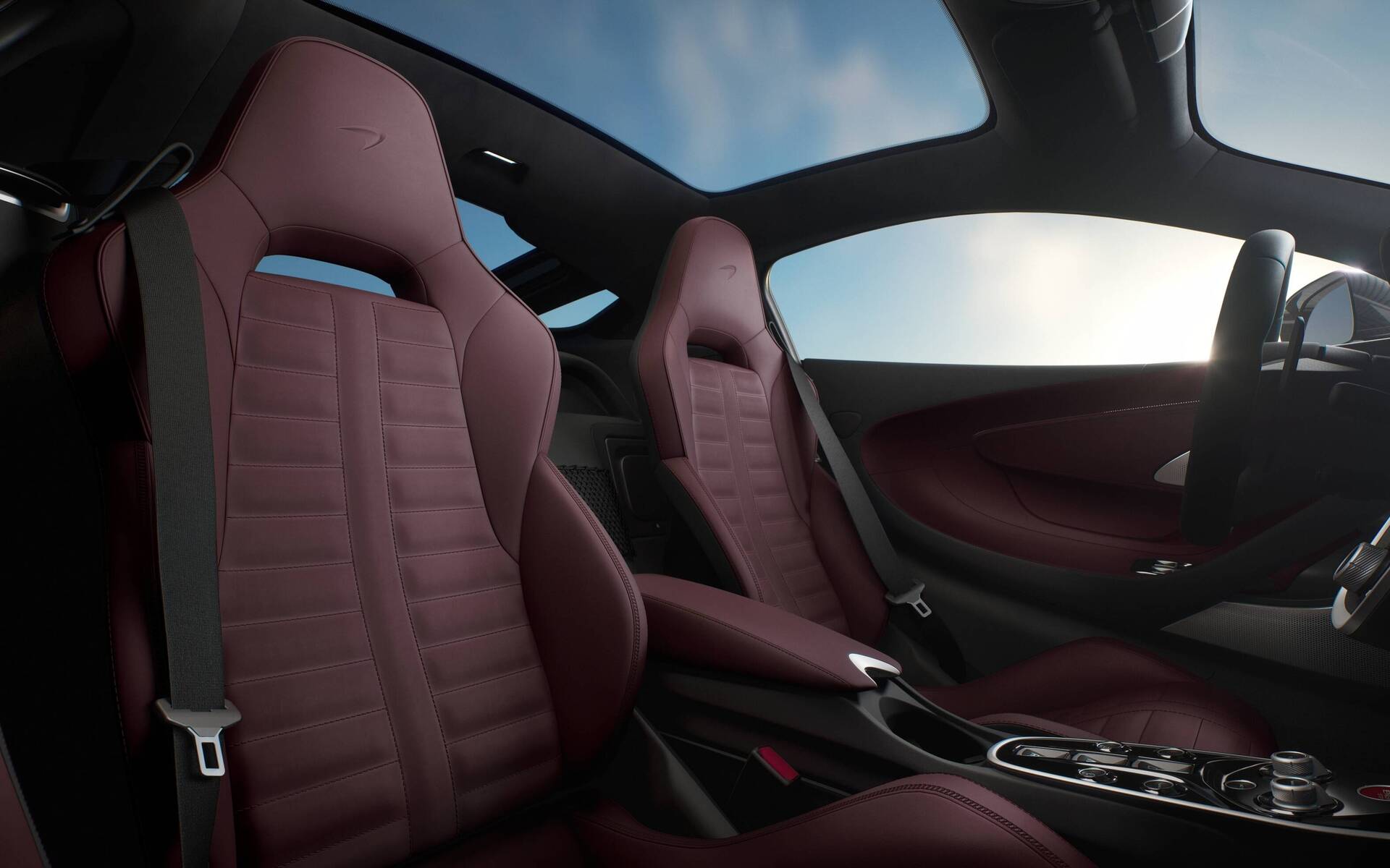McLaren a beaucoup joué avec les textures et le choix des couleurs (qui est large). Les sièges viennent de série avec du cuir nappa, mais il est possible d’obtenir du cuir aniline (traitement spécifique réservé aux cuirs de meilleure qualité) combiné avec de l’alcantara grâce aux ensembles Performance ou TechLux. Des lumières d’ambiance de 6 couleurs assurent l’éclairage intérieur. Par ailleurs, le toit en fibres de carbone recyclées de série peut être remplacé par un panneau vitré électrochromatique avec 5 niveaux de filtrage de la lumière. Au maximum, il ne laisse passer que 0,6% des rayons. Le volume de chargement, quant à lui, n’évolue pas. Malgré ses formes complexes, l’arrière peut toujours accueillir un sac de golf ou deux paires de skis de 185 cm incluant les bottes. Mieux vaut commander les bagages sur mesure optionnels et souvenez-vous que, derrière le moteur, leur contenu sera bien au chaud. Le volume total s'élève à 570 litres. Enfin, McLaren Special Operations pourra se charger de ceux qui ont des demandes particulières en termes de personnalisation.
