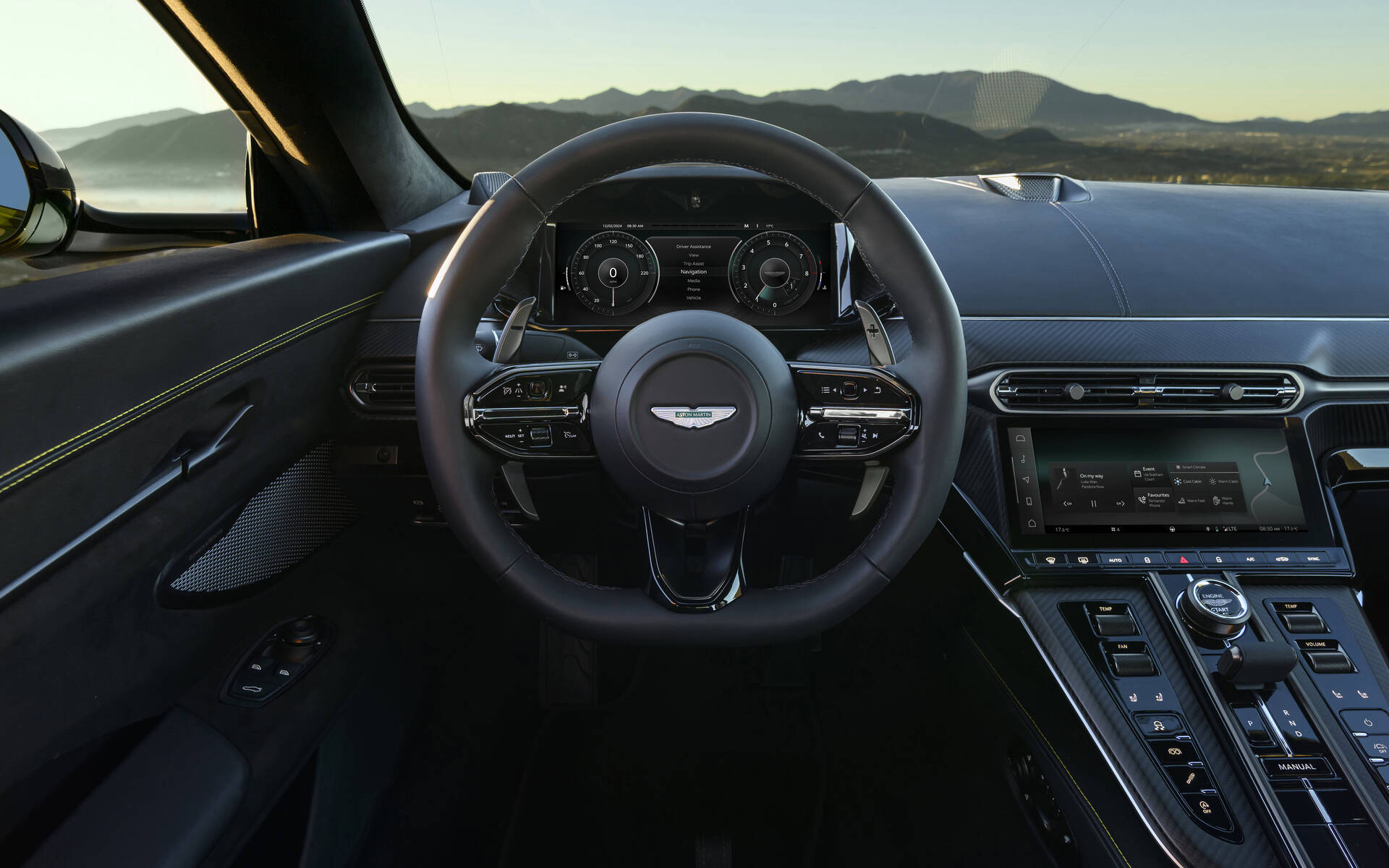 Tout comme la DB12, la Vantage reçoit un combiné d’instrumentation numérique ainsi qu'un nouvel écran tactile de 10,25 pouces intégrant un système multimédia plus évolué, développé par Aston Martin. Cela corrige l’un des grands défauts du modèle précédent, lequel était équipé d’une ancienne version de l'interface Comand de Mercedes-Benz. La planche de bord est superbe, tout comme la console centrale sur laquelle on retrouve plusieurs boutons physiques afin d’accéder rapidement aux réglages de la suspension, du contrôle électronique de la stabilité, de l’amortissement piloté et de la sonorité de l’échappement.