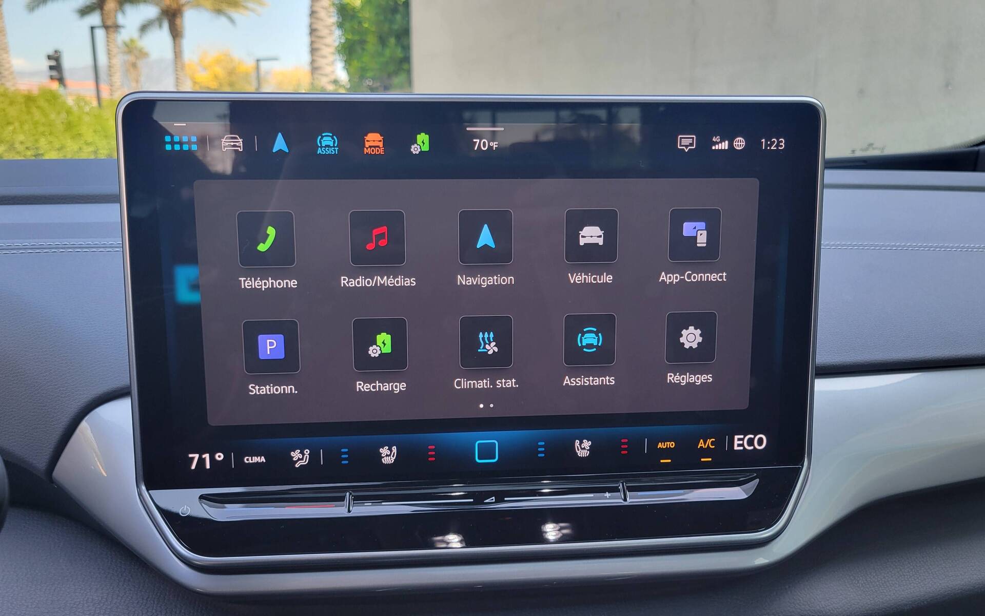Dans l’habitacle, l’ID.4 est confortable et spacieux avec un volume de chargement appréciable de 858 litres en configuration normale. On apprécie la visibilité à son volant, tout comme l’espace dévolu aux passagers à l’arrière. Les matériaux qui recouvrent l'intérieur n’ont rien de riche, mais on apprécie l’ergonomie et la disposition des divers éléments. À cet égard, les ingénieurs ont également réglé certains irritants concernant l’écran central. Le nouveau modèle de 12,9 pouces (livrable en option) est franchement plus facile à utiliser qu’il ne l’était, avec des commandes de ventilation plus claires et des boutons à effleurement illuminés dans la partie inférieure.