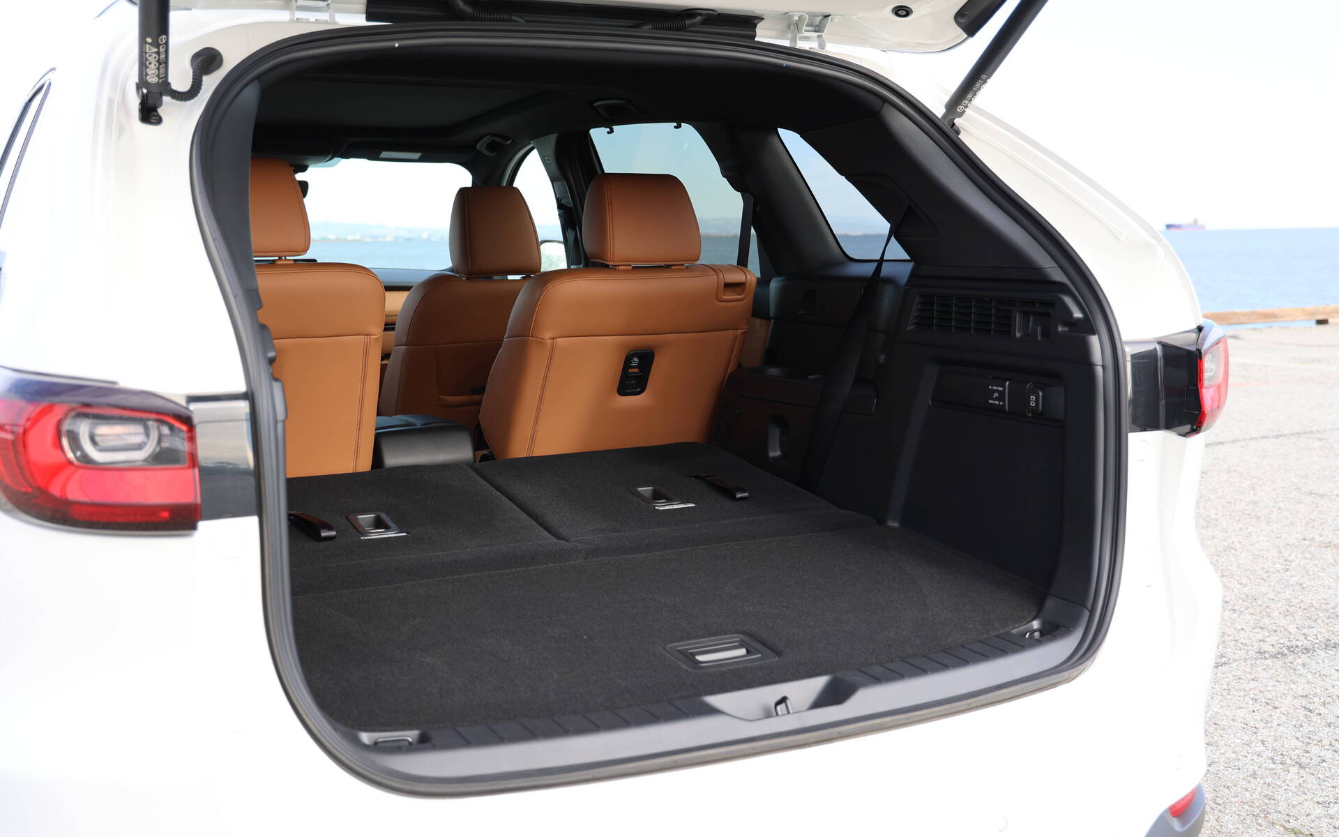 Les CX-90 et CX-70 sont construits sur une nouvelle architecture à moteur longitudinal. Leurs roues arrière motrices sont prédominantes et le couple est acheminé aux roues avant, selon le besoin, par un embrayage multidisque. Le CX-90 se distingue de son frère par une troisième banquette qui lui confère six, sept ou huit places. On choisira donc un CX-70 pour profiter au maximum du volume de chargement. Sinon, les dimensions des CX-90 et CX-70 sont identiques. Ils sont plus longs de 5,5 cm mais surtout posés sur un empattement supérieur de 19 cm à celui du CX-9 qu’ils remplacent. Avec des porte-à-faux très courts, l’effet sur le profil, la stabilité et l’habitabilité est substantiel.