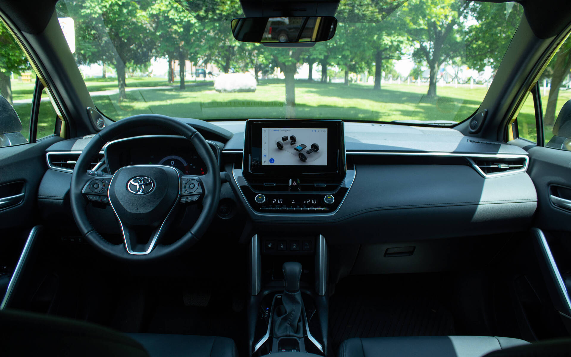 Le Corolla Cross séduit également par son format suffisamment grand pour accommoder quatre personnes, sans atteindre la taille du RAV4. L’habitacle est spacieux et bien conçu pour les familles. Grâce à des boutons physiques placés judicieusement sur le tableau de bord, l’ergonomie d’ensemble est impeccable. Le système multimédia n’est pas le plus moderne et agréable à utiliser de l’industrie. De plus, la qualité des graphismes déçoit. Cela dit, la présence d’Apple CarPlay et Android Auto permet d’atténuer un peu ce défaut. Bien que la qualité de construction soit satisfaisante, la qualité de certains plastiques pourrait être améliorée. Plusieurs concurrents, notamment Mazda, font mieux sur ce point.
