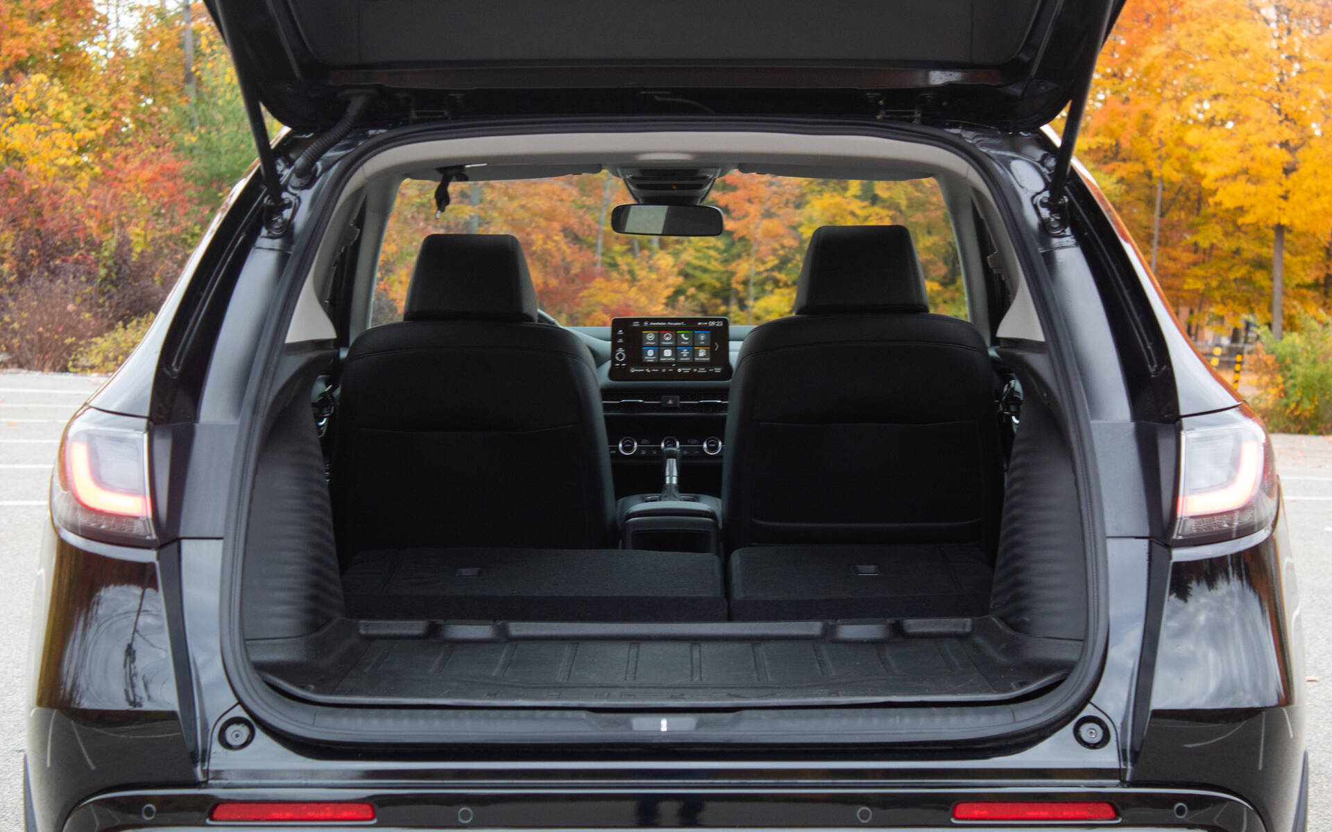Sur le plan pratique, le seuil du coffre est à la même hauteur que le pare-chocs alors que l’ouverture du hayon est généreuse. Ces éléments facilitent l’entreposage des objets. Toutefois, il ne peut malheureusement pas remorquer, contrairement à son grand frère le CR-V ou à certains concurrents comme les Subaru Crosstrek, Mitsubishi Eclipse Cross et Toyota Corolla Cross.