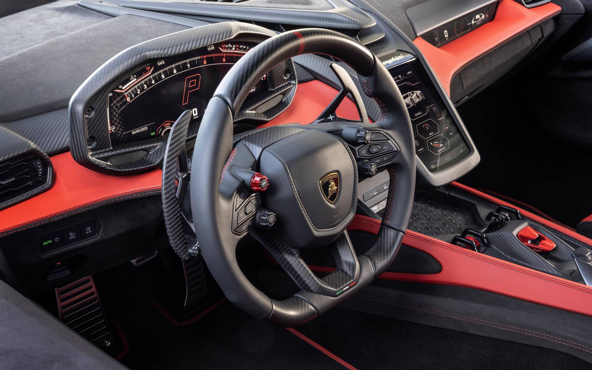 À bord, pour ceux qui sont familiers avec la défunte Aventador, l’espace se veut un peu plus généreux, notamment au niveau de la tête. Les amateurs de technologie, eux, seront servis par le tableau de bord numérique de 12,3 pouces, l’écran tactile de 8,4 pouces et le troisième écran de 9,1 pouces installé devant le passager. La disposition des commandes rappelle quant à elle un avion de chasse. Prêts au décollage?