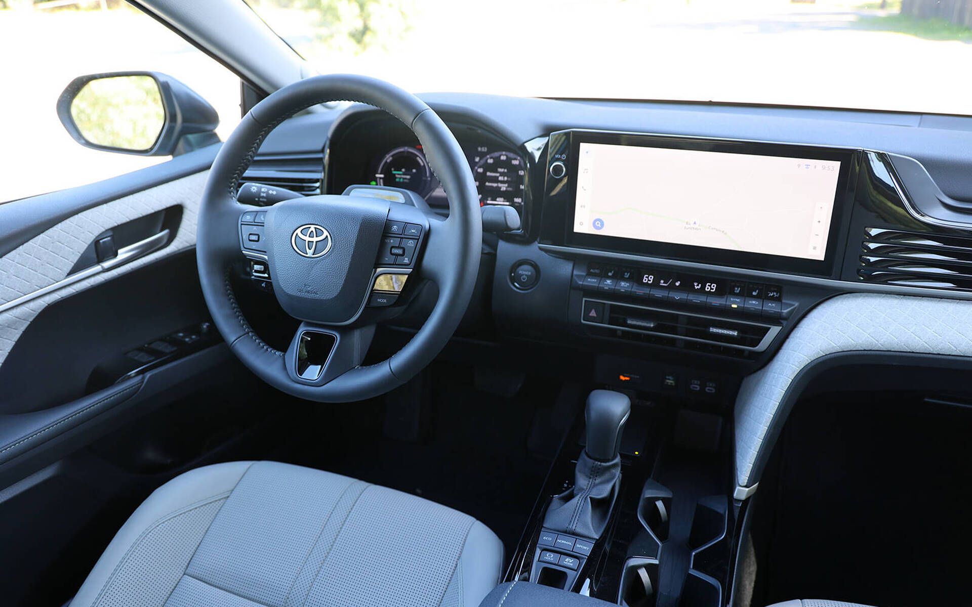 Montez à bord d’une version XSE ou XLE et vous découvrirez un niveau de luxe remarquable et une finition soignée. Les sièges garnis en suédine et/ou en cuir véritable sont surplombés d’un toit ouvrant panoramique, une première pour la Camry. La XSE peut de surcroît revêtir un cuir rouge très attrayant, dynamisant cet habitacle plus ergonomique que jamais. Autre nouveauté, deux écrans de 12,3 pouces viennent égayer l’environnement, mais uniquement dans les versions XSE et XLE.