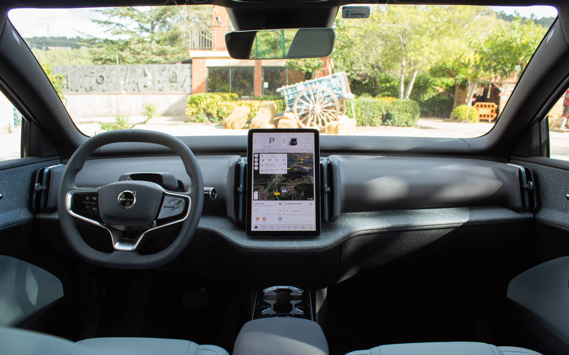 Dans l’optique d’abaisser les émissions de gaz à effet de serre, l’analyse du cycle de vie de l’EX30 affiche la plus faible empreinte carbone des véhicules électriques de la marque. Cela s’explique par l’utilisation exhaustive de matériaux recyclés que l’on retrouve à bord. L’habitacle épuré réduit au maximum les composants et centralise les commandes. Ainsi, les portières n’ont ni haut-parleurs ni boutons. Tout se contrôle par l’intermédiaire du système multimédia. Vitesse, ajustement des rétroviseurs, navigation, téléphone… tout y est. Le problème, c’est que l’interface installée requiert du temps pour l’apprivoiser. Et que se passe-t-il si le système cesse de fonctionner? Ce dernier possède tout de même des redondances qui maintiennent les fonctionnalités principales en marche. Par ailleurs, nous déplorons l’absence d’une instrumentation face au conducteur qui est pourtant présente dans l’EX90. Et pourquoi pas un affichage tête haute à la place?