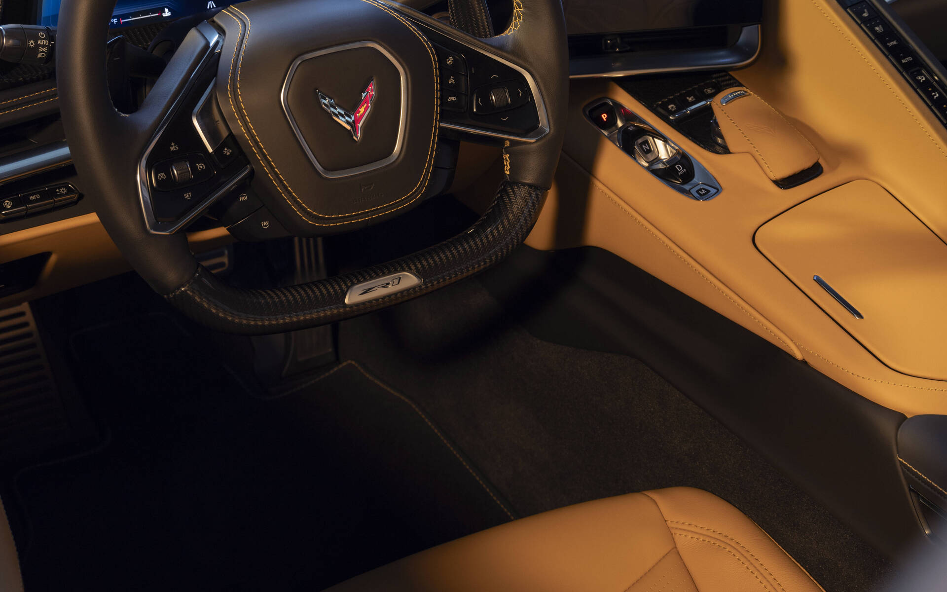 Aussi puissante, mais un brin plus rapide en ligne droite, la variante E-Ray est la toute première Corvette hybride de l’histoire. Plus confortable que la Z06, mais tout aussi impressionnante en tenue de cap, cette Corvette électrifiée ajoute deux roues motrices grâce au moteur électrique additionnel. Le V8 LT2 de 6,2 litres et 495 chevaux fait équipe avec un moteur électrique de 160 chevaux. L’électricité est stockée dans une toute petite batterie lithium-ion d’une capacité de 1,9 kWh. À l’instar des autres modèles, une boîte double embrayage à 8 rapports est accouplée au bloc thermique. Sur une route sinueuse, la Corvette E-Ray séduit par sa tenue de route efficace, digne des meilleures sportives. Mais lorsqu’elle est poussée à la limite sur la piste, cette version électrifiée sous-vire un peu plus à cause du poids supplémentaire du train avant.