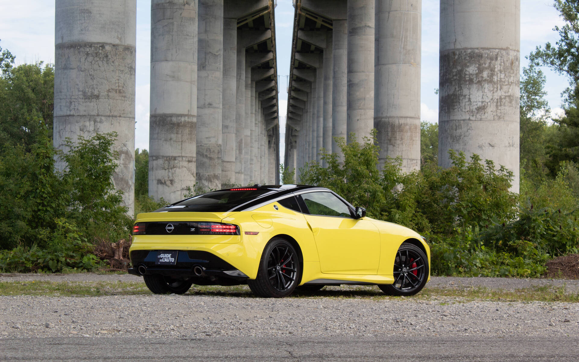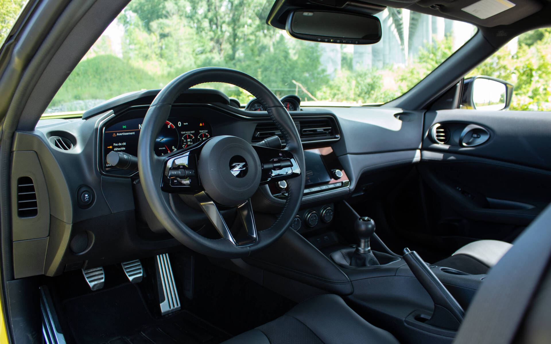 À l’usage, ce moteur à deux visages convient très bien à la Z, qui dispose de suffisamment de couple à bas régime et se montre explosif à partir de 5 000 tr/min. Développant 400 chevaux et 350 lb-pi de couple, le bloc peut être jumelé à deux boîtes de vitesses. La première est une manuelle à 6 rapports, tandis que la seconde est une automatique traditionnelle comptant 9 vitesses. Cette dernière fait correctement son travail, même si elle s’avère moins réactive qu’une transmission à double embrayage. La manuelle apporte un agrément de conduite supérieur, même si nous aurions apprécié un embrayage plus progressif et facile à doser.