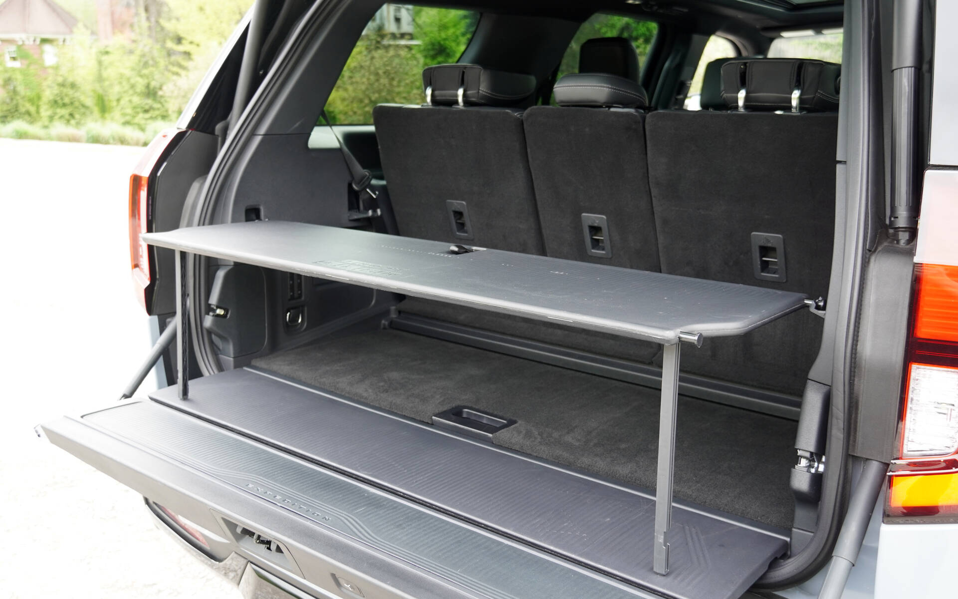 Il y a toutefois une troisième fonction à cette tablette : la banquette. En effet, grâce à au hayon qui s’abaisse — et qui peut supporter un poids maximum de 500 lb — deux adultes peuvent aisément s’installer sur cette banquette rendue possible par la tablette qui se transforme en dossier. Pour admirer un coucher de soleil ou profiter d’un feu de camp, il est difficile de trouver mieux… à bord d’un VUS du moins.