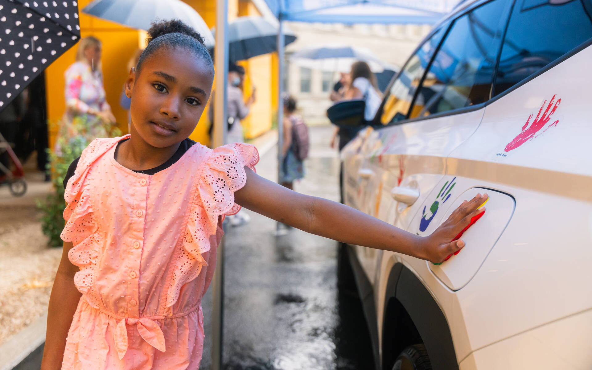 Au cours d’une cérémonie devenue une tradition de L’espoir sur roues de Hyundai, les jeunes patients et leurs familles ainsi que le personnel soignant de l’Unité Charles-Bruneau ont apposé leurs empreintes colorées sur un véhicule Hyundai blanc, une façon d’illustrer leur force et leur résilience.