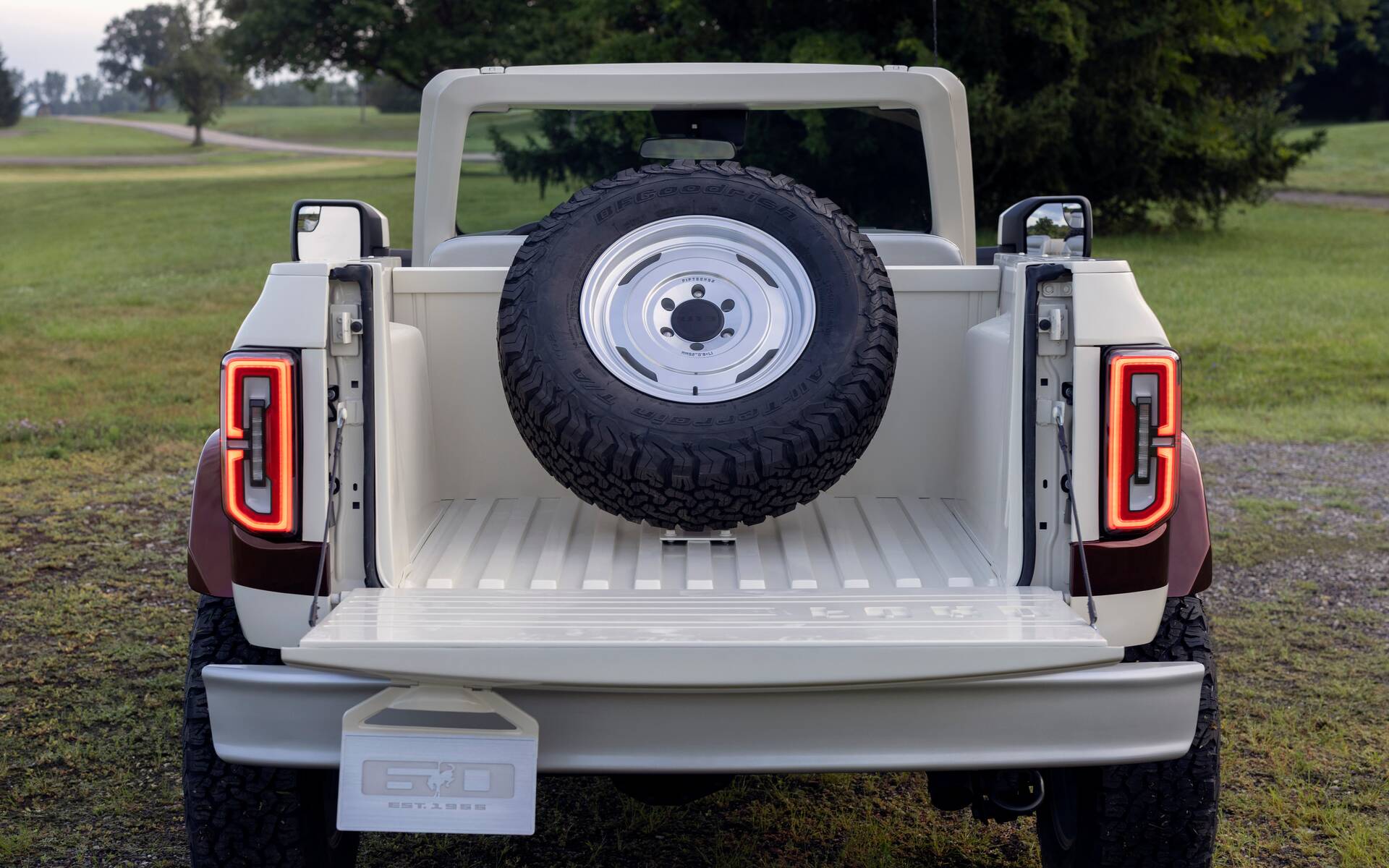 Avec une carrosserie portant la mythique couleur inspirée du Blanc Wimbledon de 1966, le concept Bronco Roadster est fidèle aux racines du Bronco en donnant une bonne idée de ce à quoi pourrait ressembler un Bronco Roadster de génération actuelle.