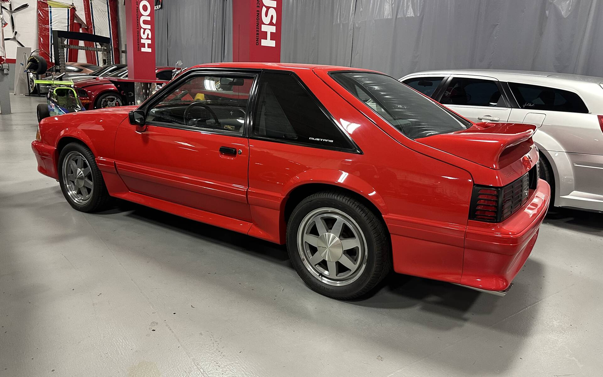 En fait, Ford travaillait déjà avec Roush depuis de nombreuses années, lorsqu’il lui confia, en 1987, le développement d’une édition spéciale 25e Anniversaire. L’objectif était bien sûr de la commercialiser en édition limitée pour 1989. Jack Roush a donc entrepris le travail en adaptant l’injection de carburant à un moteur V8 de 351 pouces cubes (5,8 litres) provenant de la division marine de Ford. Roush considérait que cette adaptation d’un moteur de plus grande cylindrée suffirait, mais Ford n’en était guère satisfait. Ainsi, Roush a choisi de greffer à cette même mécanique deux turbocompresseurs, ce qui allait porter la puissance au-delà des 400 chevaux. Une motorisation foudroyante jumelée à une boîte manuelle T-5, rendant la voiture plus performante et plus puissante que tout ce qui était commercialisé à cette époque. N’oublions pas que ce n’est qu’en 1990 que Chevrolet a lancé la Corvette à 400 chevaux, qui allait être suivie l’année suivante par la Dodge Viper.