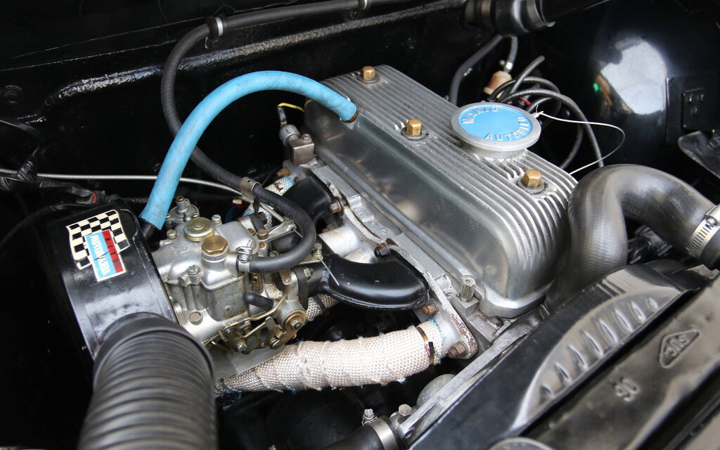Bien que la brochure d’époque parle de trois moteurs différents, il n’y avait en réalité que deux options mécaniques d’origine Renault. Le 4 cylindres de base de 1,1 litre développait 60 chevaux, mais il était possible de monter un 1,3 litre dit « Autobleu » qui augmentait la puissance de 20 chevaux. C’est ce dernier, beaucoup plus rare, qui équipe notre modèle d’essai. Doté d'une culasse spécifique, on le reconnaît aussi à son bouchon d'huile bleu caractéristique.