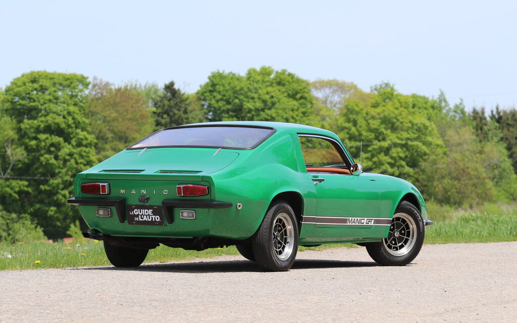 Le modèle que vous avez sous les yeux est sans aucun doute une des plus belles survivantes. Appartenant au député Gérard Deltell, la voiture a été magnifiquement restaurée. La teinte verte a été trouvée grâce à une trace de la peinture originelle située dans l’encadrement des feux arrière, le tapis de couleur or (cousu sur mesure) vient des États-Unis, et tous les éléments de l’habitacle sont identiques à ceux montés sur les Manic à la sortie d’usine.