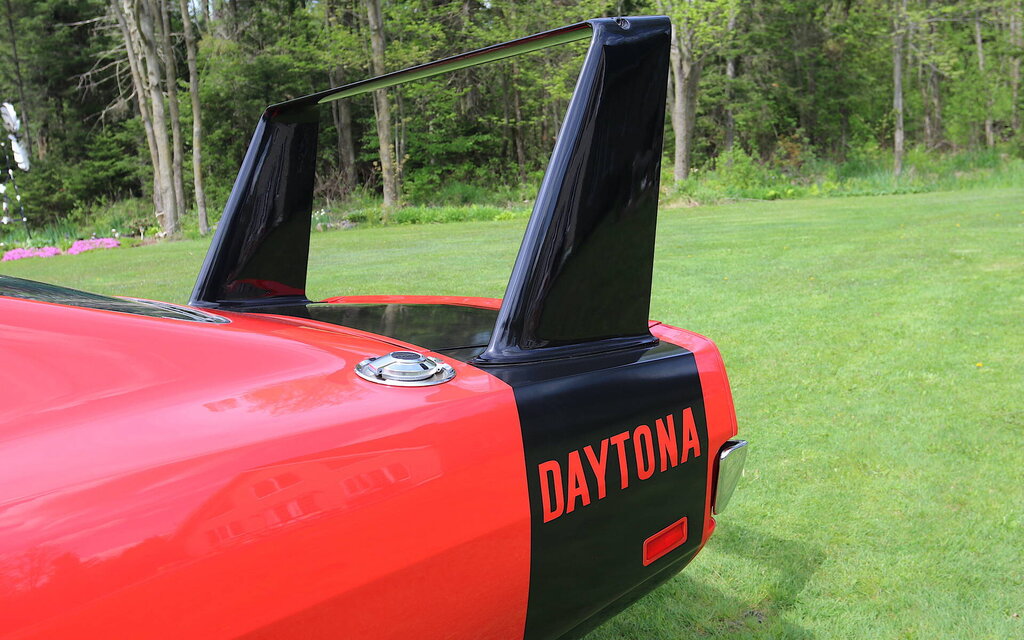 « À notre avis, il n’existe pas d’auto aussi peu élégante sur le marché. C’est même assez monstrueux et plutôt grotesque. Si au moins ce bricolage était proprement exécuté, ce serait certes moins frappant. On dirait que c’est du « fait à la maison »…Il est également difficile semble-t-il, de peindre une voiture moitié métal, moitié fibre de verre, puisque notre Daytona de couleur or était d’au moins quatre teintes différentes. Les pneus sont montés sur des roues très ordinaires et il n’y a même pas de compte-tours au tableau de bord. Le volant est celui d’une Plymouth normale et convient peu à un tel bolide. Le moteur de 426 pouces cubes n’est pas un exemple de silence. Son bruit sera toutefois agréable au conducteur sportif. Ce moteur a le ralenti de celui d’une voiture de course et n’est pas bien adapté à la circulation en ville. Il surchauffe d’ailleurs très facilement. La transmission automatique est excellente et le changement des vitesses s’effectue très rapidement. La tenue de route n’est pas renversante. L’avant cherche à sortir des virages et les pneus fument de manière alarmante. Elle penche beaucoup dans les courbes. À moins que vous ne soyez intéressés à devenir le futur Richard Petty ou David Pearson, ou à être le centre d’attraction dans les rencontres de « drags », nous ne voyons pas comment une telle voiture pourrait vous être utile, surtout à 7 000 $ (55 000 $ aujourd'hui). En d’autres termes, regardez, mais ne touchez pas…»