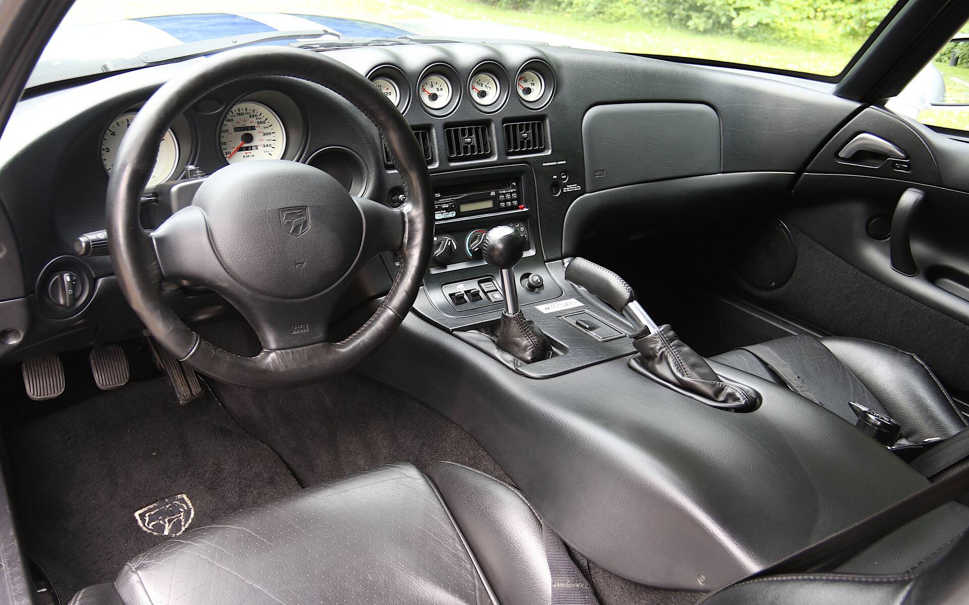 Posée au ras du sol, large et trapue, la voiture demeure toujours aussi intimidante aujourd’hui. À l’ouverture de la portière, la largeur du seuil impose quelques contorsions au moment de monter à bord. La qualité de finition n’est clairement pas son point fort, la Viper reprenant certaines commandes déjà vues dans des véhicules bon marché du Groupe Chrysler. La console centrale est immense, avec un gros levier de vitesse planté dessus. Le volant oblige à tendre un peu les bras, mais le pédalier réglable en profondeur permet tout de même de trouver une position de conduite correcte.