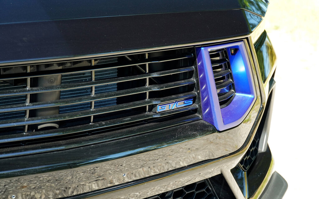 Précisons tout de même ce qu’ajoute la sélection du groupe California Special, une dépense de 2 700 $ qui ne peut être appliquée que sur une livrée GT Premium. Les jantes gris carbonisé de 19 pouces de diamètre sont automatiquement boulonnées à la voiture, mais comme l’exemplaire que nous avons pu conduire était également muni de l’ensemble de performance GT, les jantes en aluminium usiné et bleu Rave sont un peu plus larges que celles fournies avec l’ensemble de base.