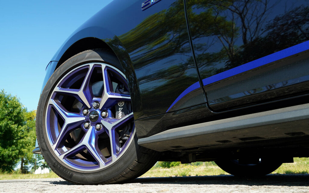 En plus de l’ambiance « black and blue », la Mustang GT mise à l’épreuve se distinguait par la présence d'un autre groupe optionnel qui met l’emphase sur la performance. Au-delà des jantes élargies abordées plus haut, l’ensemble prévoit un système de freinage Brembo aux quatre coins, un frein de stationnement électrique à main, un crochet de remorquage avant, la grille de calandre peinte en noir lustré, des ressorts de suspension avant plus robustes, un différentiel à glissement limité Torsen d’un rapport de 3,73, une barre antiroulis arrière plus grosse, ainsi que des ajustements uniques apportés au châssis. Les réglages du contrôle de stabilité, du système ABS et la direction sont également spécifiques à ce groupe optionnel.