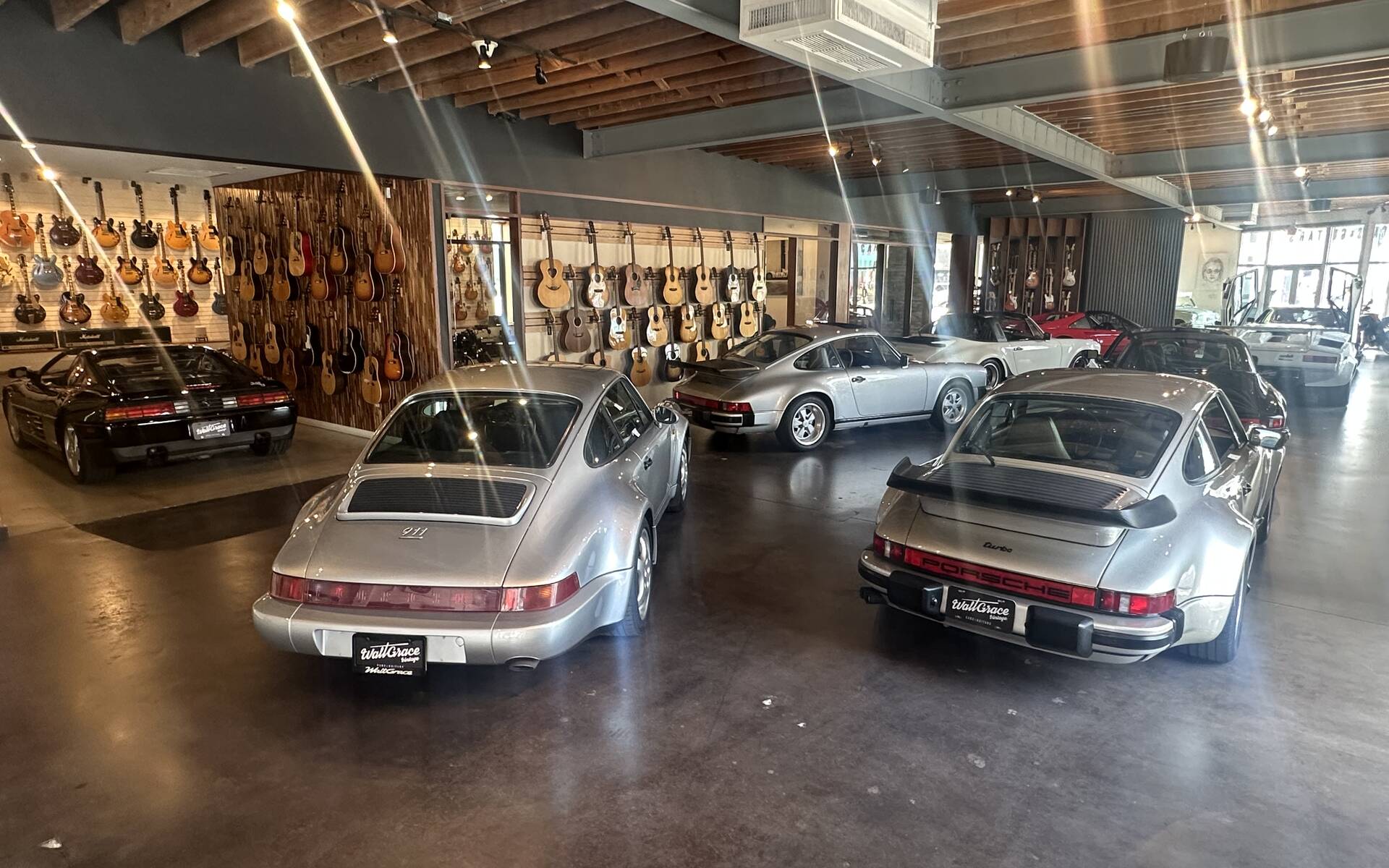Aussitôt entré, j’ai vu une Porsche 944 Turbo de course, ayant jadis été pilotée par Derek Bell. Également, une 911 Targa 1987, une Ferrari 308 GTS et une Lamborghini Countach LP5000. Et ces bolides étaient entourés de guitares, tout aussi désirables. Des pièces de collection placées de façon thématique, ceinturées d’accessoires musicaux et de pièces automobiles, comme si l’on souhaitait ne s’adresser qu’à mon père et moi! Le souffle coupé, j’observai d’un autre œil cet environnement. Les voitures, forcément, qui attiraient mon attention, mais aussi les guitares, amplificateurs, motos, toiles et divers éléments de décoration.